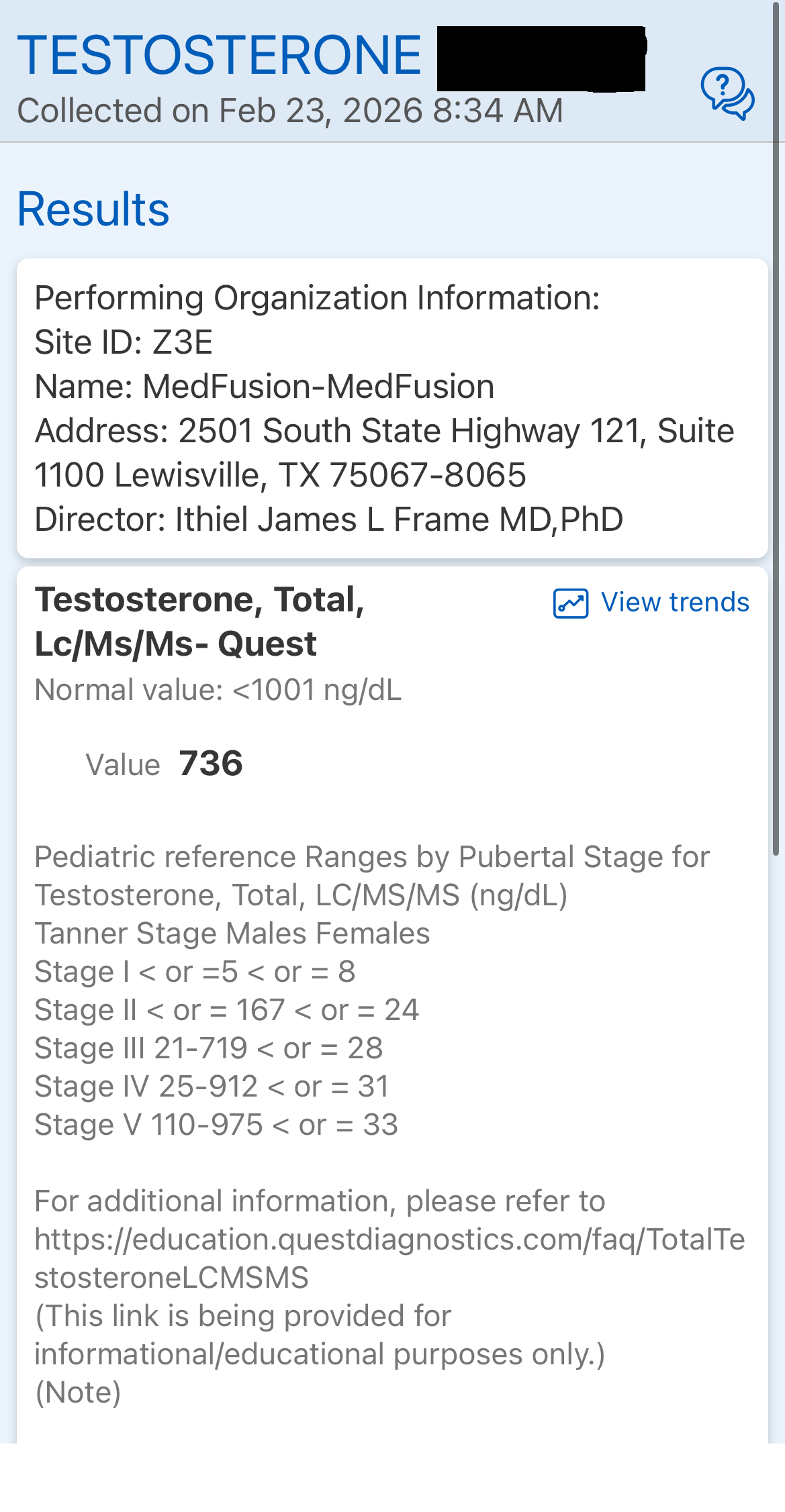 Tanner Stage: END OF STAGE 4