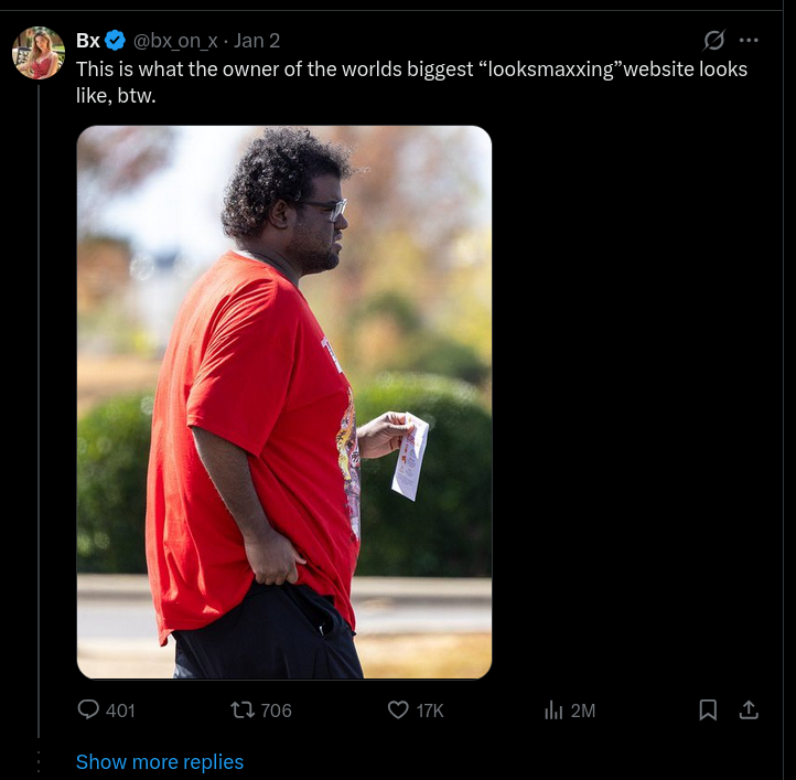 This Looksmax.org-SS connection has been made before, but I think it is starting to become mainstream.