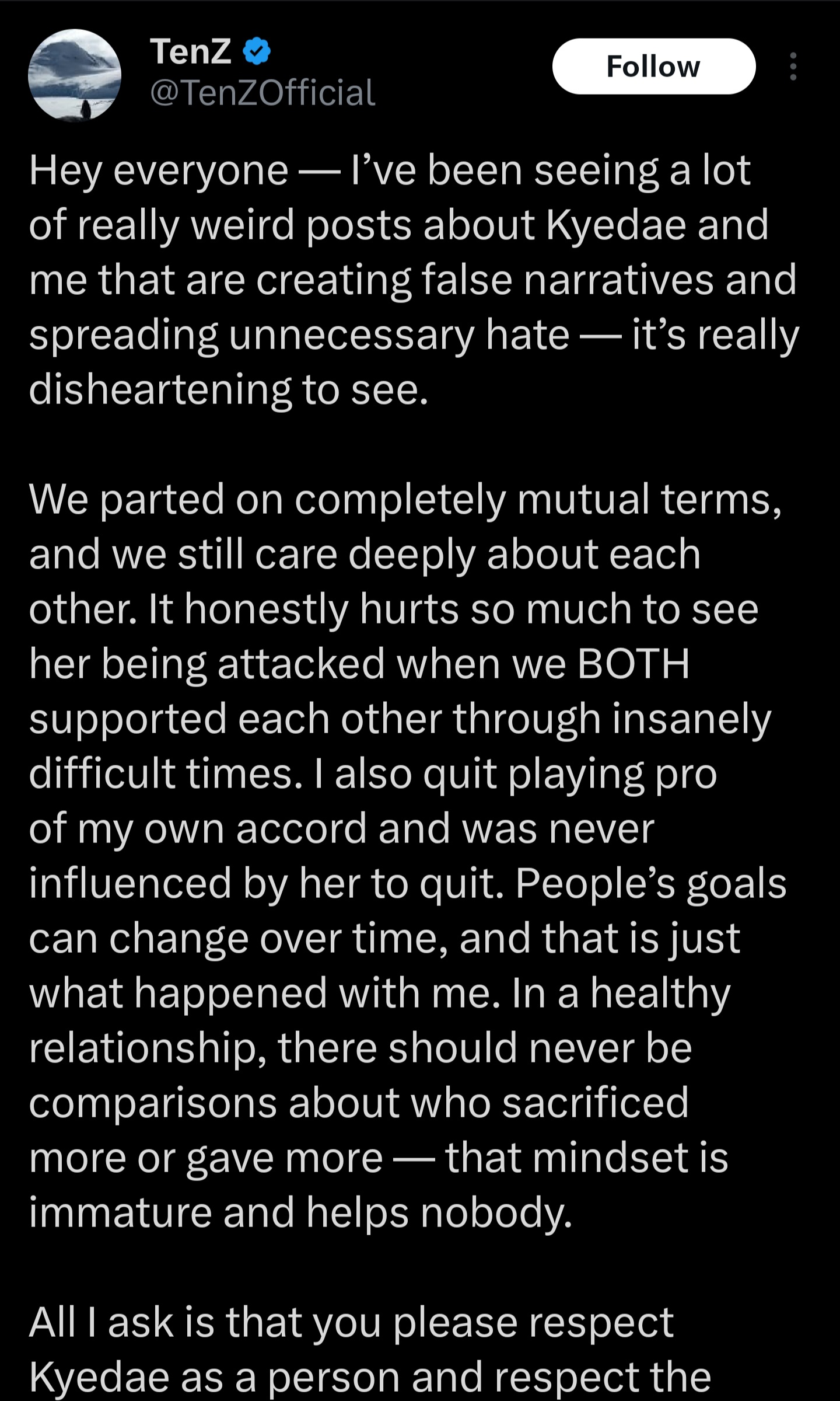 >Kyedae announces on Twitter and Instagram that they had already been separated for some time
