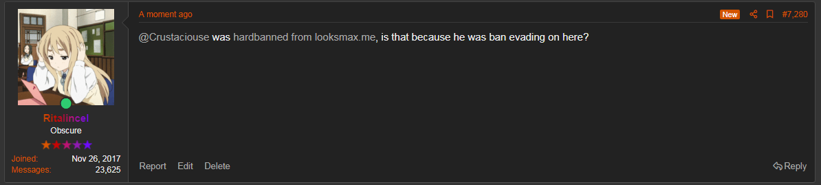 What if the Crustaciouse alt was an inside job by the incels.is mods in order to hard ban him because they don't like him, why would someone ban evading be that obvious?