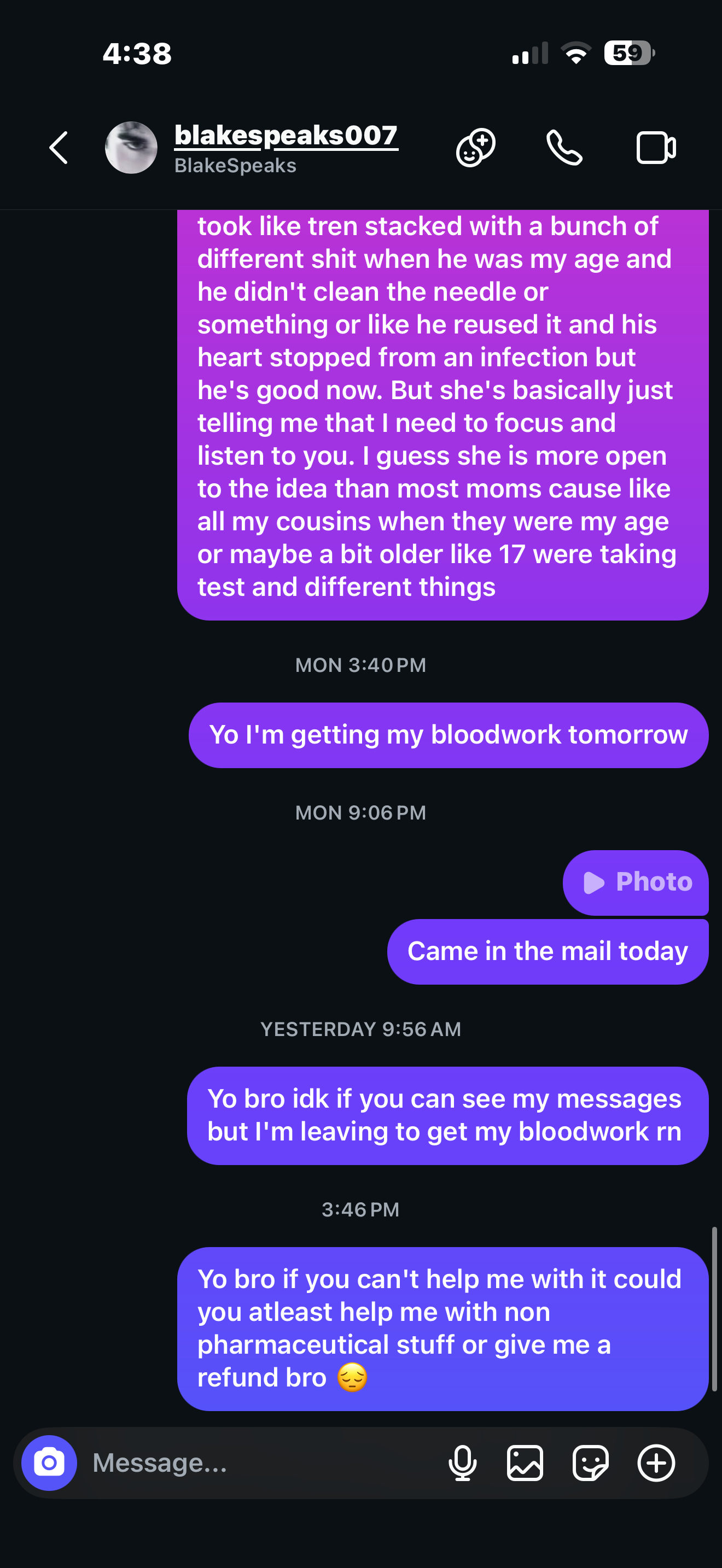 You mean for like him telling me to take roids illegally as like a sold product? Or like that he didn't refund me, Idk if that's worth going through and I don't think most people care if I posted on YouTube or something his shit now says "atleast be 18" so he prob won't do it to other people but idk