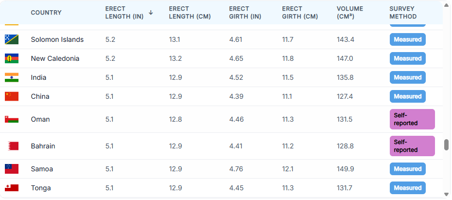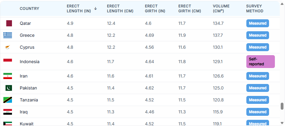 Penis Size by Country 2025