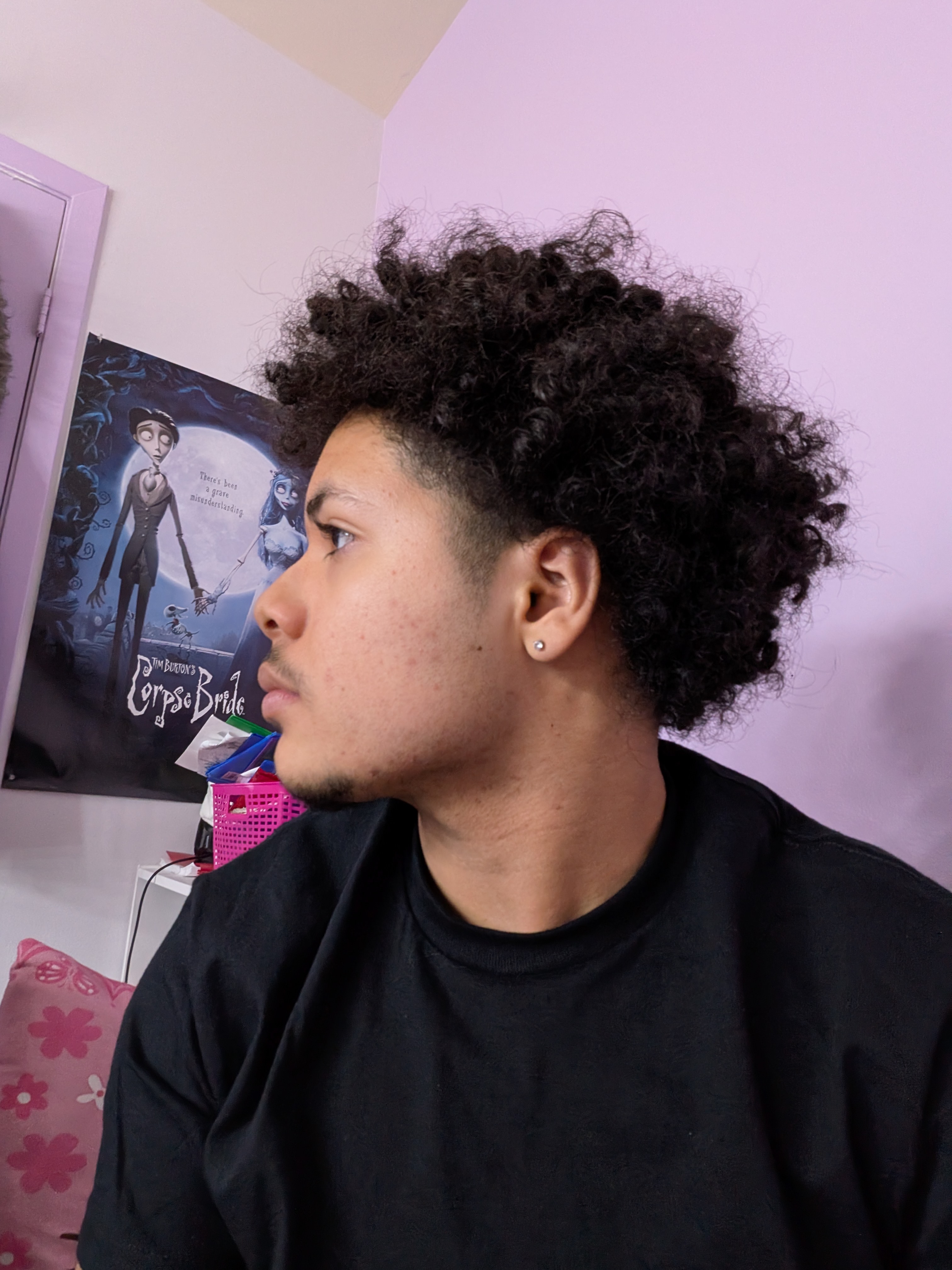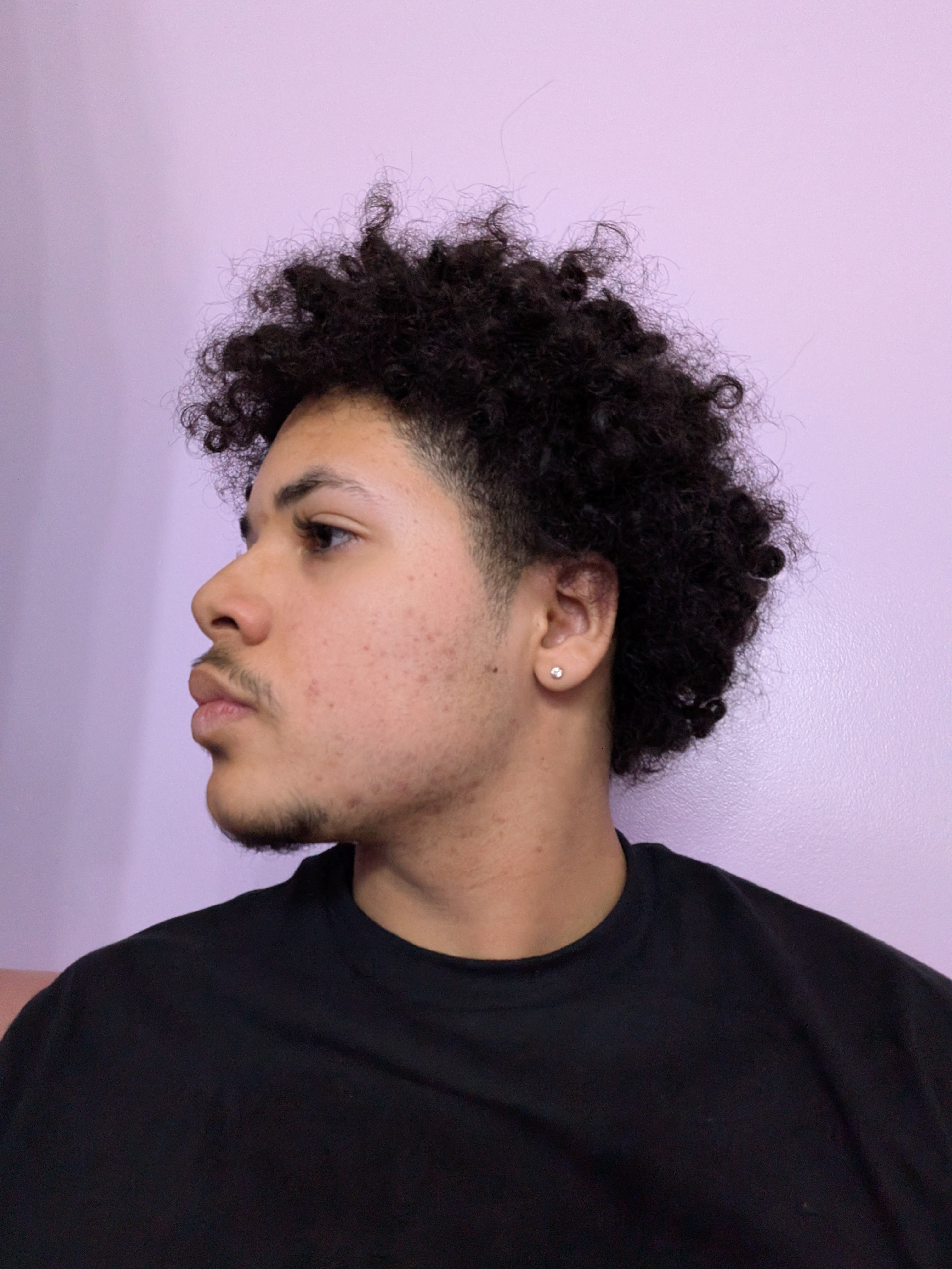 recessed maxilla, grow hair out, shave that shit off if you cant grow a beard, rounded jaw, with those earrings your zestymaxxing, train neck, and use something like benzoylperozide for acne