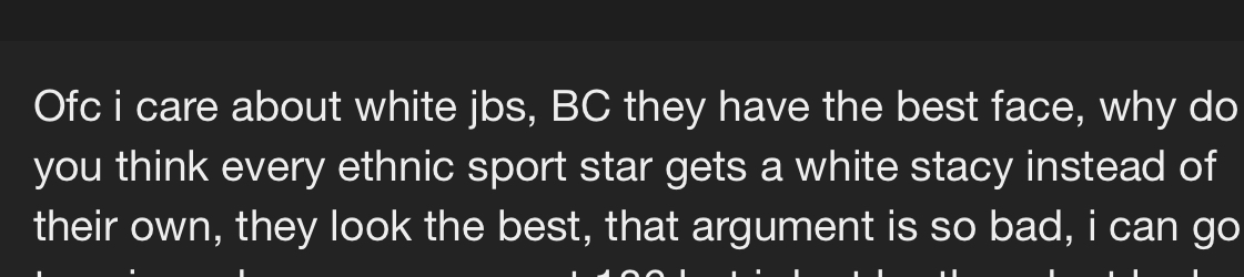 Well even a ricecell themselves say white people mogs ethnics faciallyIt's better to fuck a Japanese or Korean woman than a white woman and every Asian women will probably think of this guy as Chad