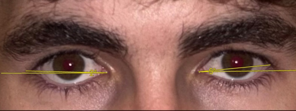 Genuine rating of eye area/canthal tilt, i’d say it’s neutral or slightly negative, anyone know why the left eye seems slightly more opened than the other and how to fix this, also how to get a more positive and symmetrical canthal tilt.