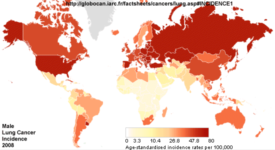 Take a look at these maps of lung cancer by country. If you've ever been to the middle east or know someone from the middle east (I do) then you know that they smoke non stop like trains (even women), and all types of tobacco (Syria, Lebanon and Jordan are in the top 15 tobacco consuming countries). But for some reason they have among the lowest cases of lung cancer in the world.