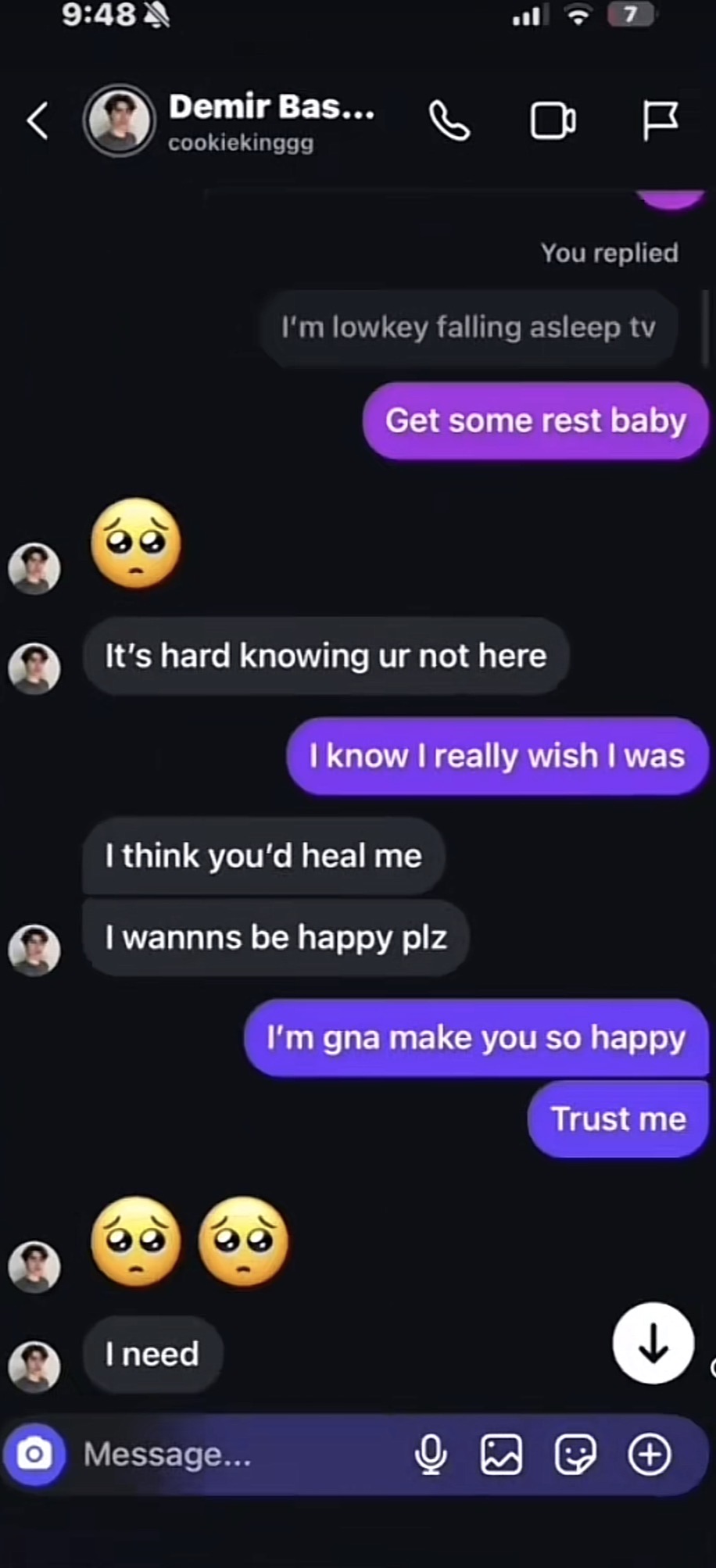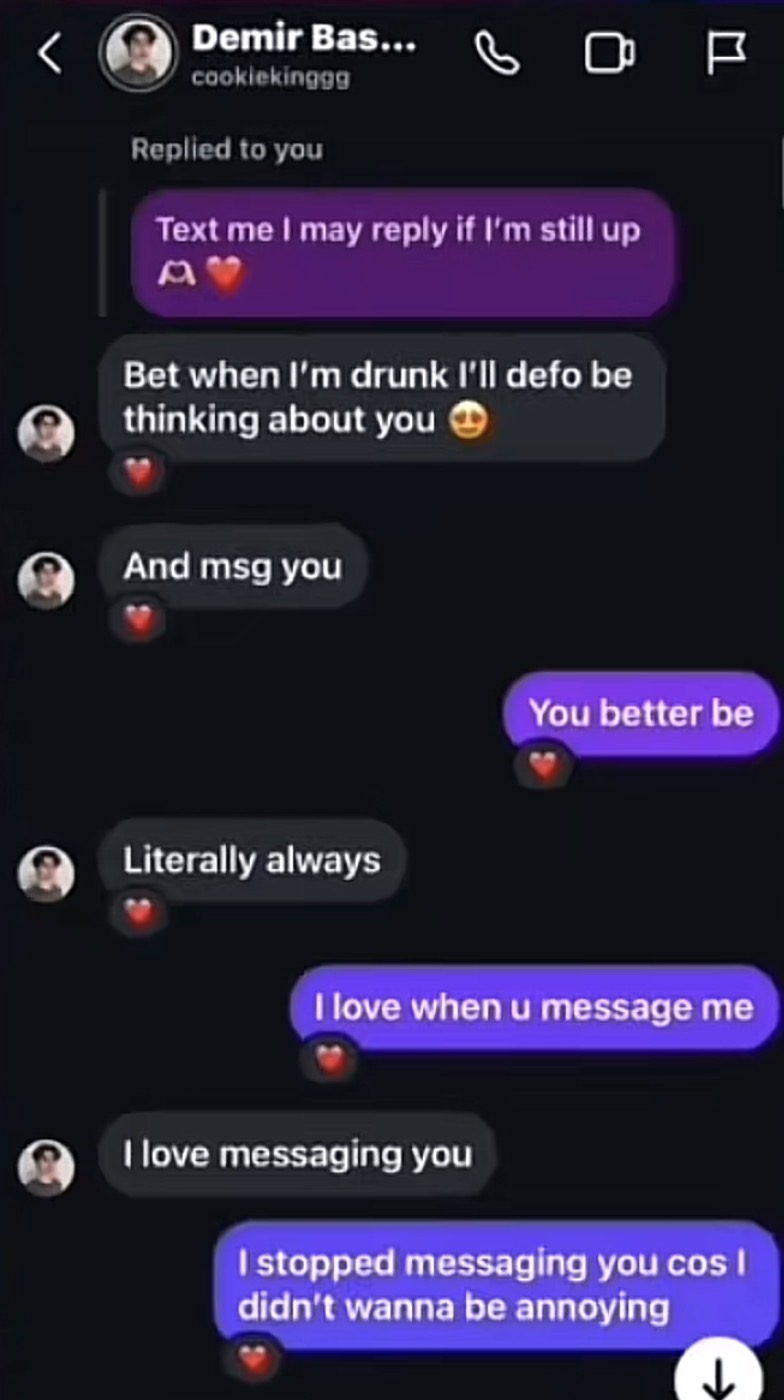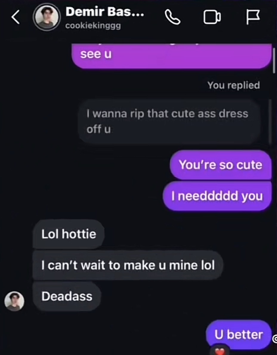 The “ I just finished to you “ is the only part that is a little bit weird but other than that it’s kinda normal conversation with your girlholy holy holy bitch is just mad bc he don’t want her anymore![]()