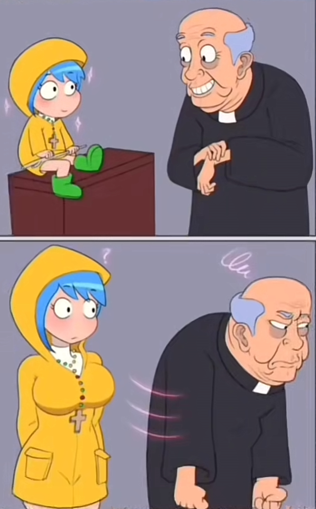 the priest is being cucked meanwhile he is cucking the wife.