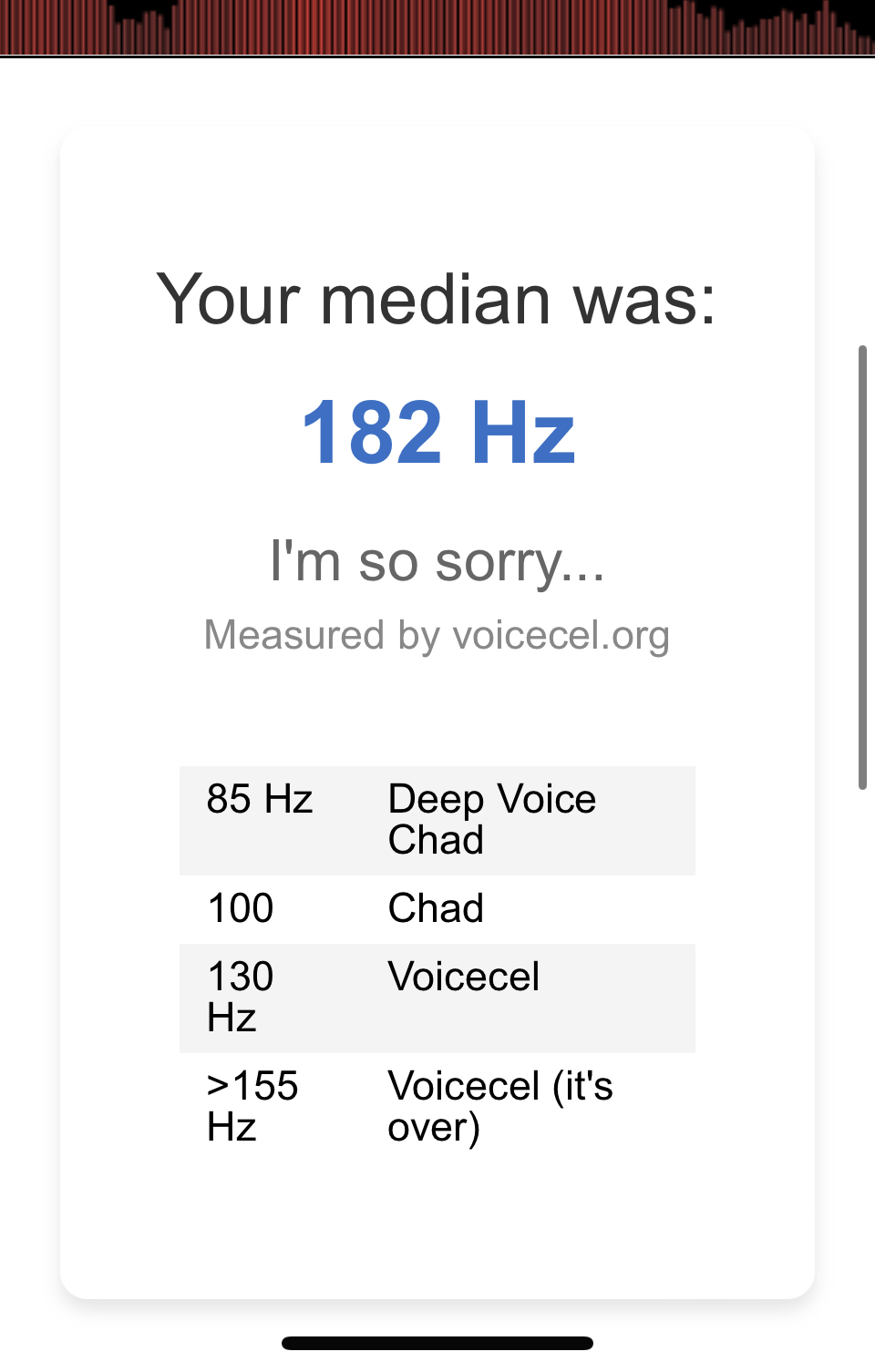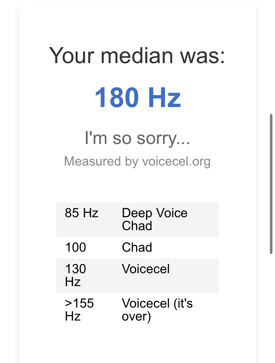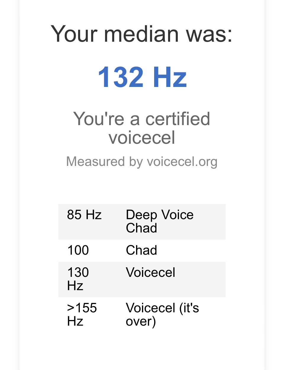 I got 130 but thats prolly frauded so Its def worse than that. Death tier. Voicemaxxing asap