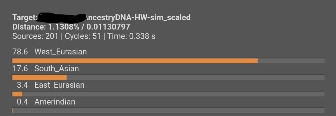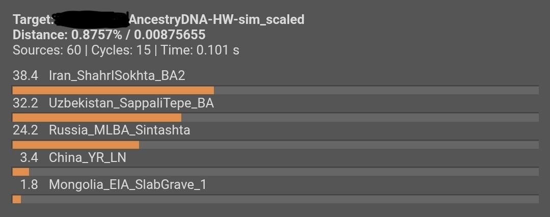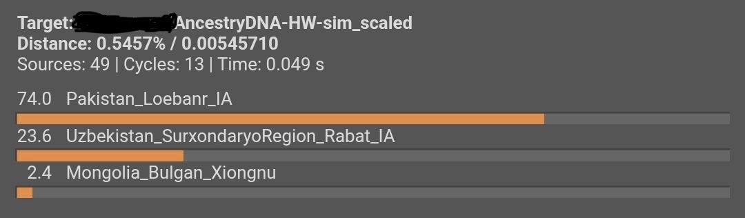 ma g look at the distances in the models find a good source model for nationality and ur admixture breakdown i forgot what the ideal distaance should be but yeah and how did u only pay 5$ did u get it from davidski? and just try to learn qpadm its way better for u trust