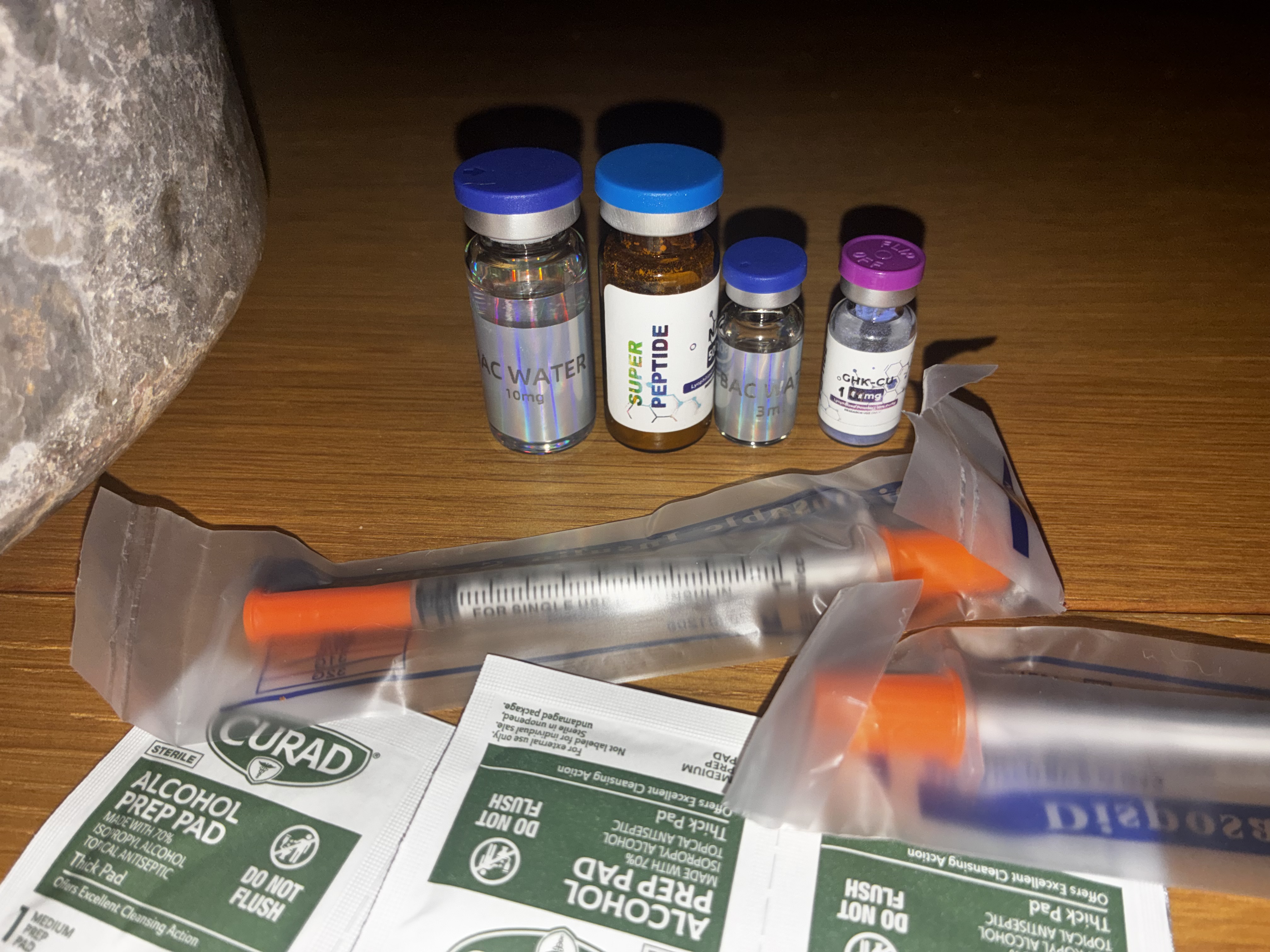Bought some peptides online verified and it was GHK cu and NAD+ the lady said take GHK every day 10 units with the insulin needle. And the NAD+ only Monday to Friday the bottle is 100 mg and she said it could last me 3 weeks to a month and The NAD+ of 500 mg could last 2 months or more both peptides came with reconstiution Bac water and alcohol wipes and a bunch of needles Im new to this and want to know how to take them since I dont know what the little rocks and blue sand in the vile are and what thier purpose is its more first time on these so im here asking for recomondations on whats the best time to take them how many times a day when i rest and if being also on addys will affect this and most importantly where to inject them. Thanks