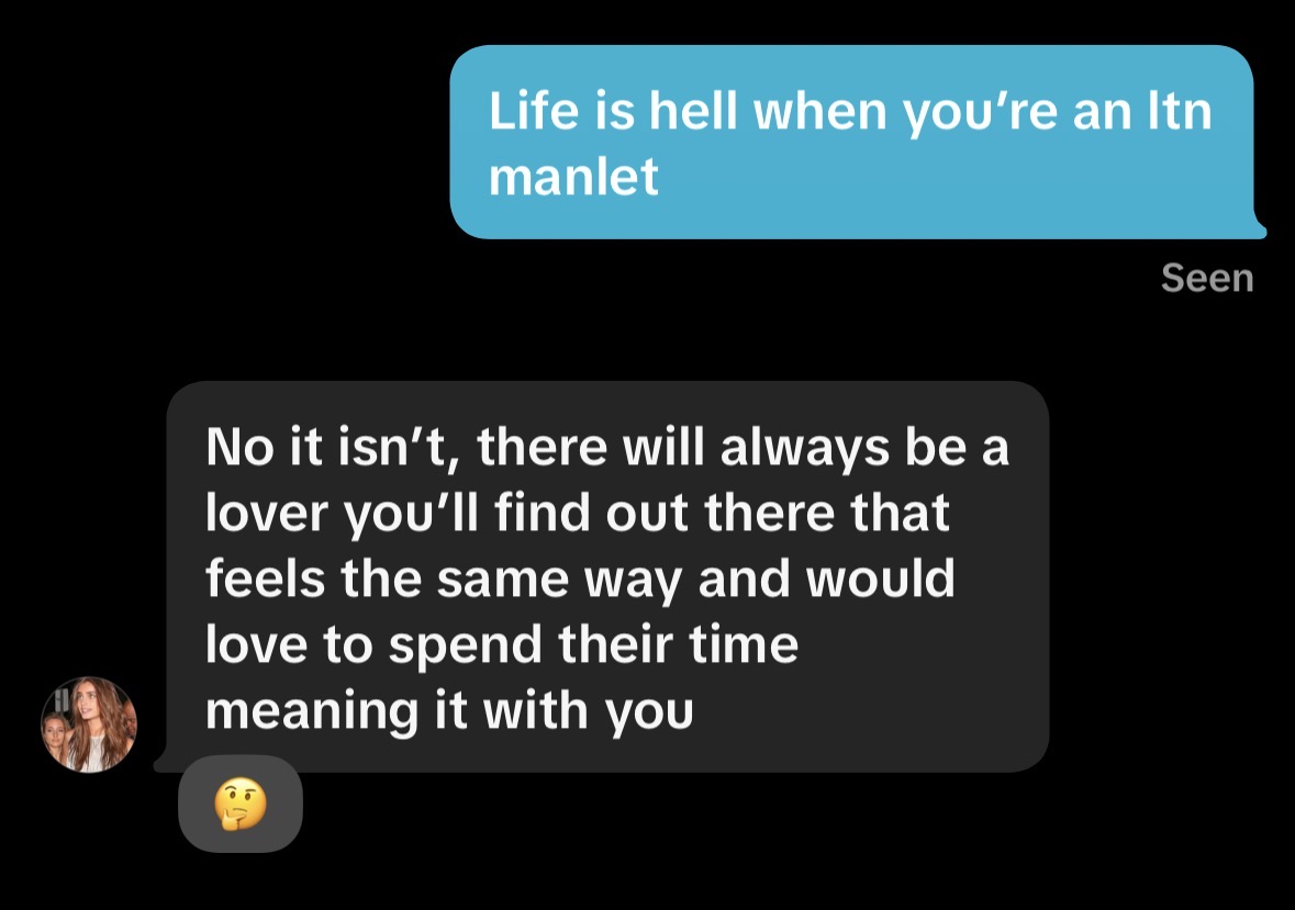 So life isn’t hell if you’re an ltn manlet 🤣
