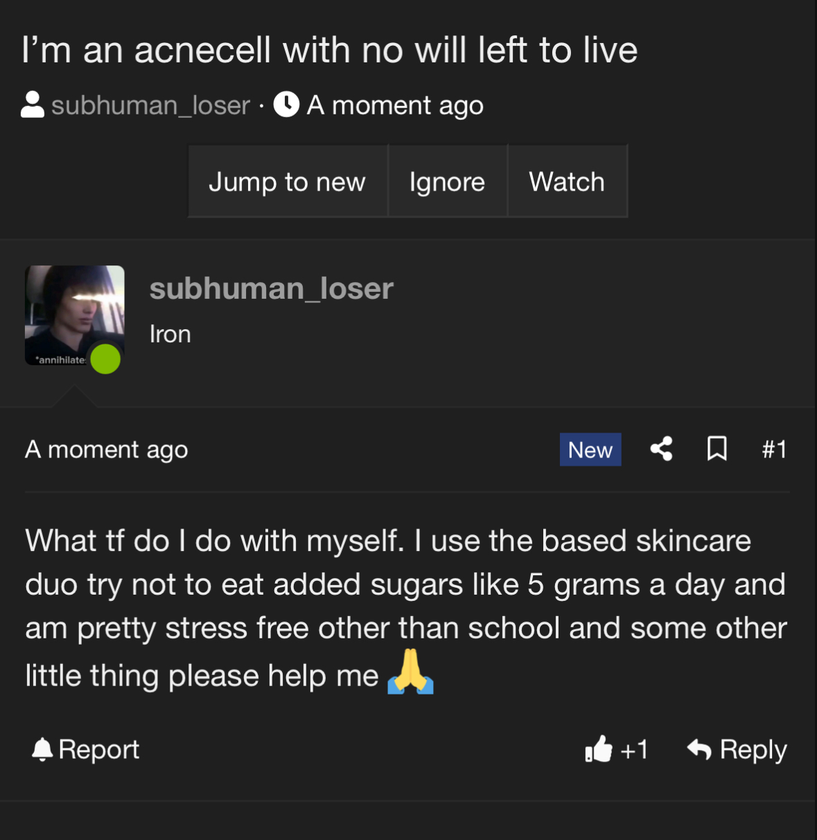 Today i stumbled upon a user by the name of subhuman_loser. He made his first thread today. Now me and you together will analyze this user because its very interesting.