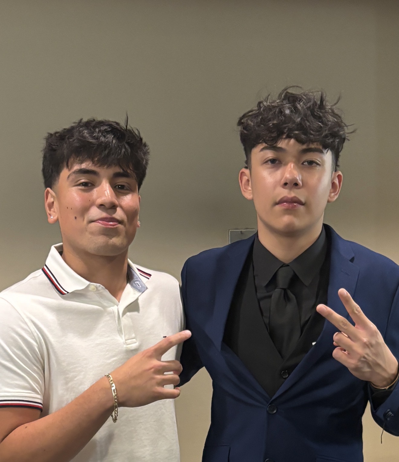 guy in black in blue first photo js lost some bf, other guy looks the same, maybe even worse imo