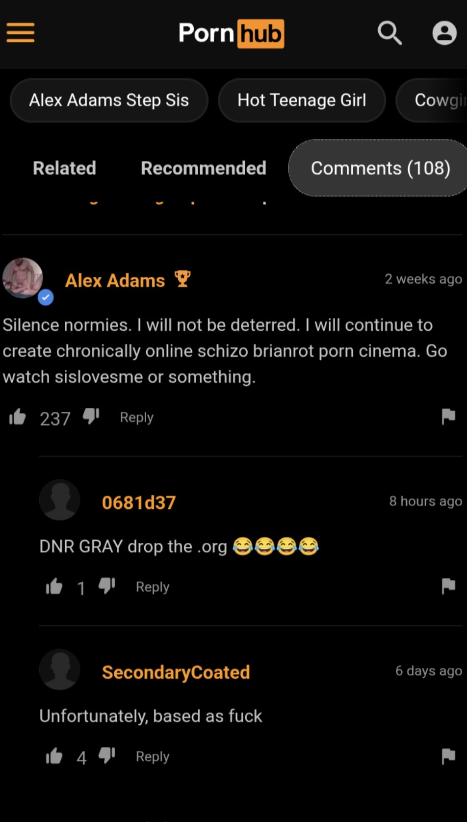 "drop the org" niggas migrated to pornhub too