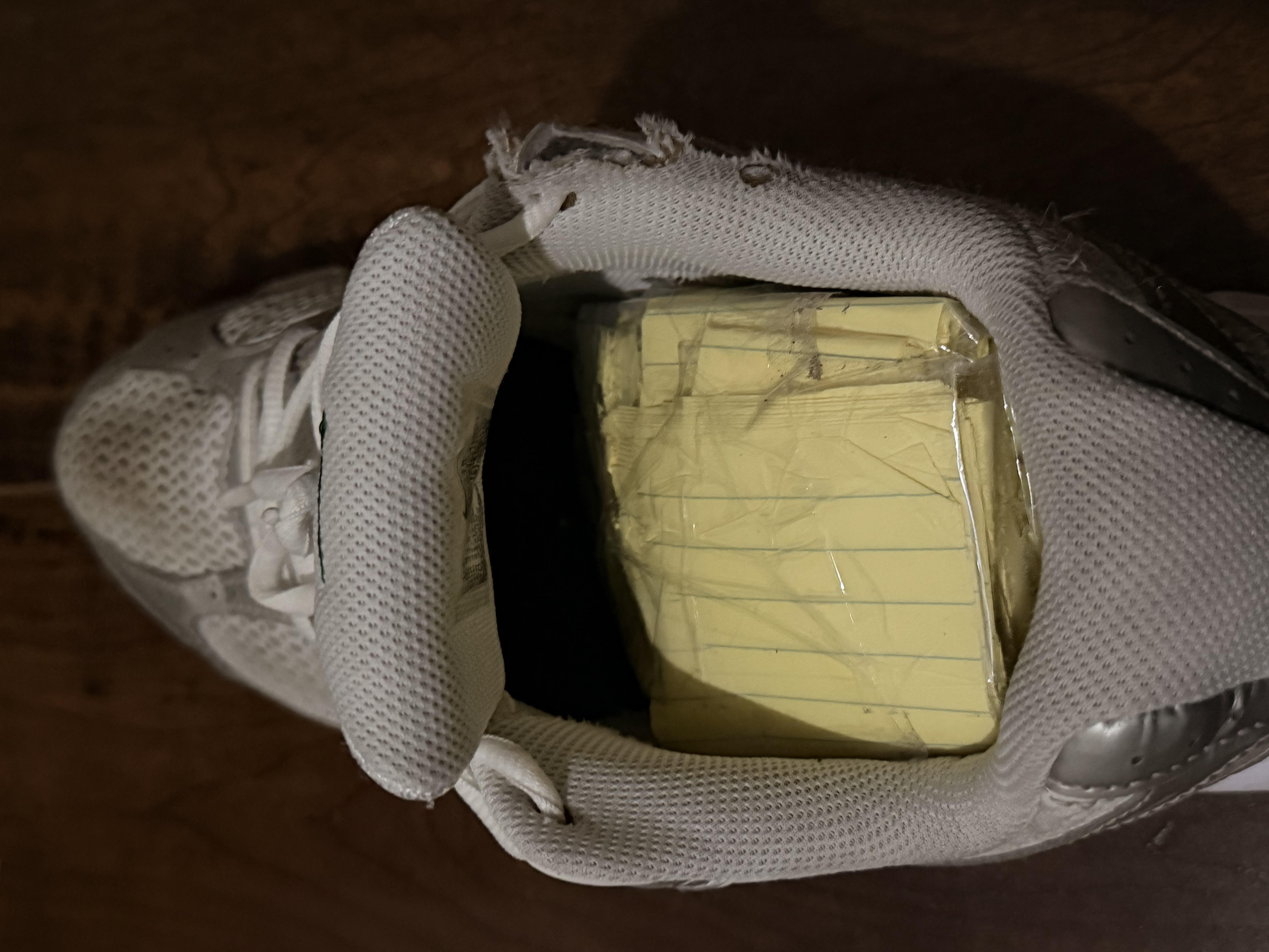 It’s pretty simple you just fold paper a bunch of times until it’s about 3 x 4 inches and then place a folded sock over your lifts to not only hide them but to cushion your soles all day (trust me without the sock it hurts like hell if you rock them for 8 hours at school)