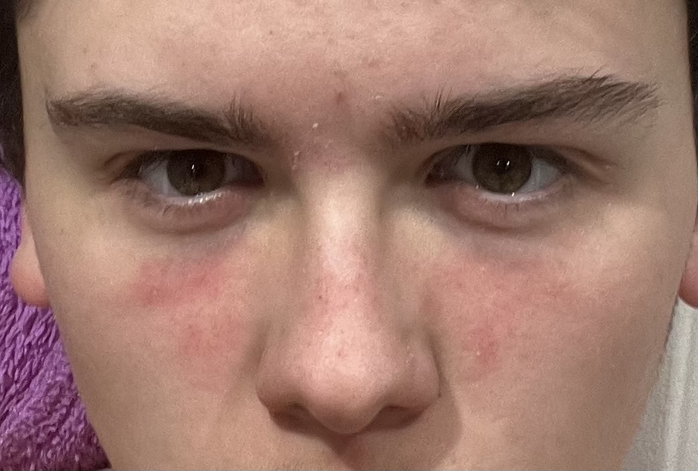 I have had the redness on my face for a while and has only recently spread to my nose I have relatively sensitive skin and I am only on moisturiser now as it got worse when I used a sensitive cleanser (ps I already know my eyes are cooked and I need to cut weight)