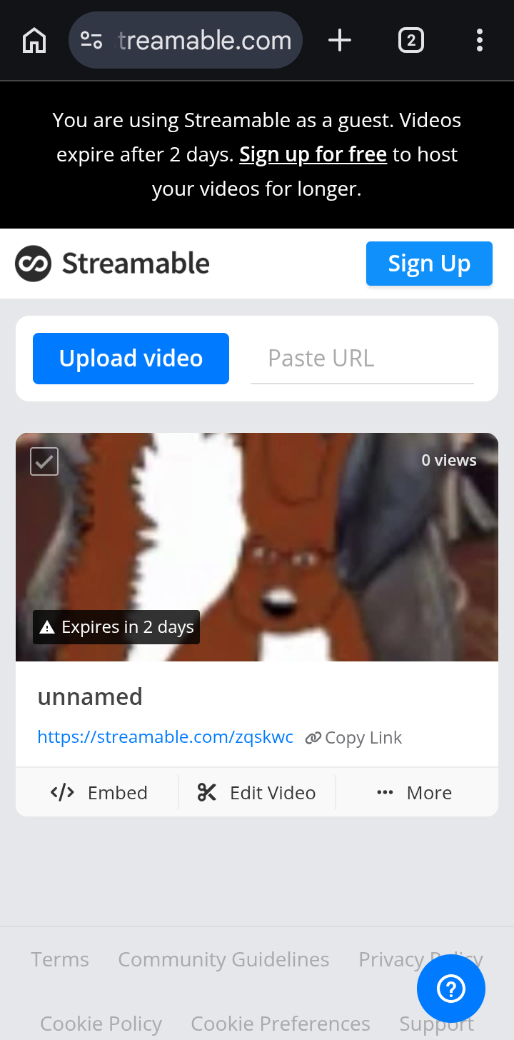 copy the link on streamable & put it on the link emoji