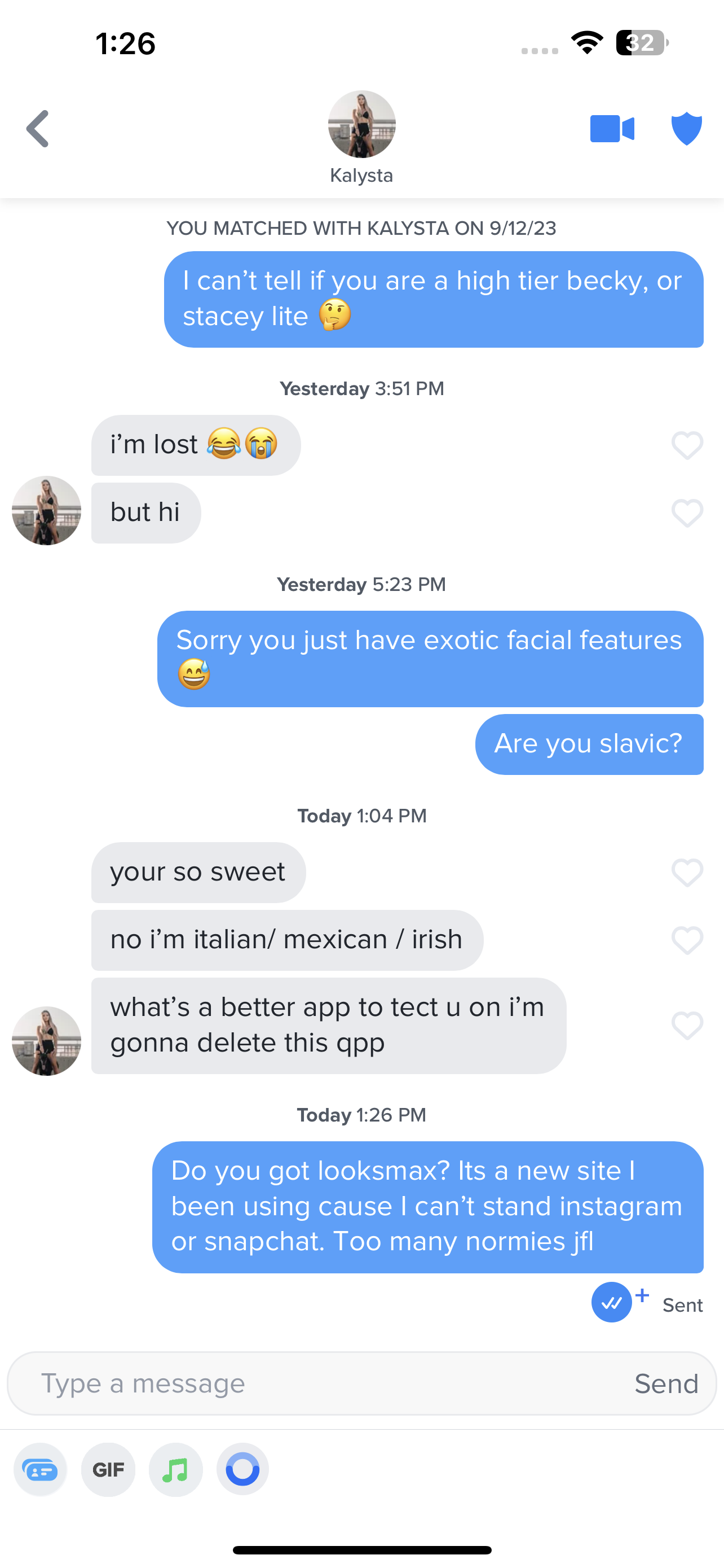 1. This girl claims she has 3000 matches and is currently entertaining 20. She says 80% of them open with some shit like this and she is trying to find ways to troll them. This guy off his PFP seems at least MTN-HTN with a built body. ( could not find how she looks on her reddit)