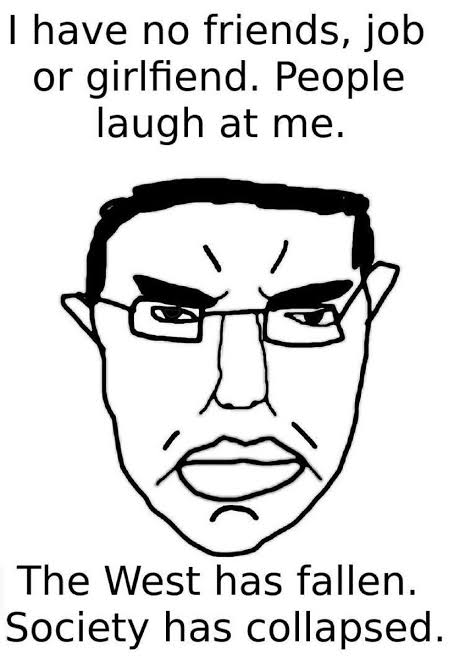 they are similar to a chudjak meme where some low IQ low tier normie white guy was bullied by his peers, had no loyal friends, KHHV, browses an incel/looksmax forum, turns into an sfcel neonazi groyper that utters "Duh west has fallen, society will collapse, its over, race mixers are low iq" fucking idiot
