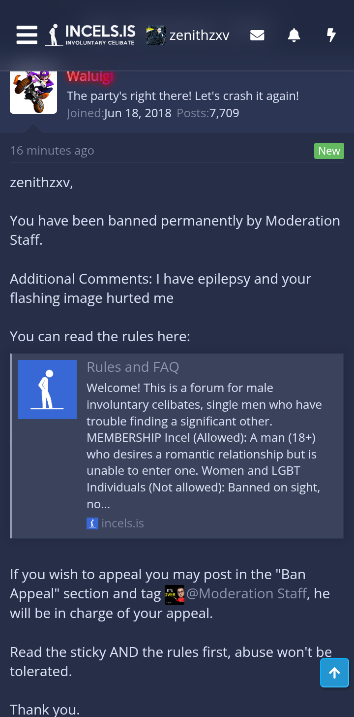 Meanwhile in 4 other forums including .org, they never ban me just because of my aviLeave it to .is to ban someone for "epilepsy imagery"