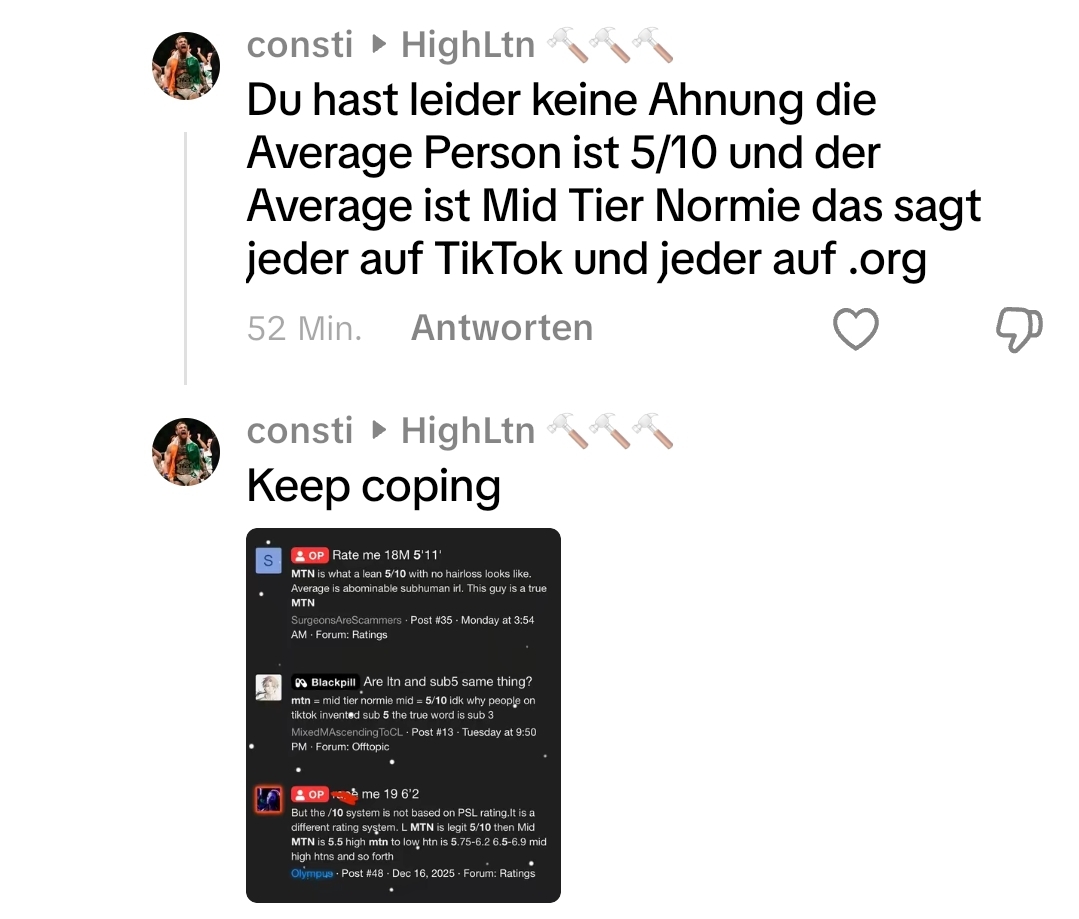 Everyone in the comment rates him mtn..