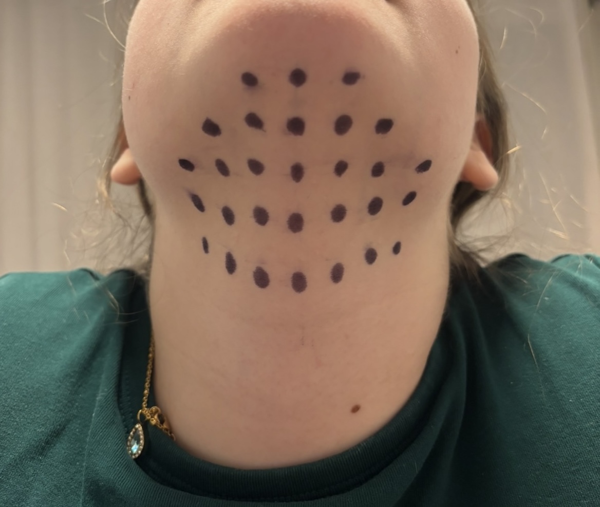 I Inyected myself in the cheeks and her on the submental region.