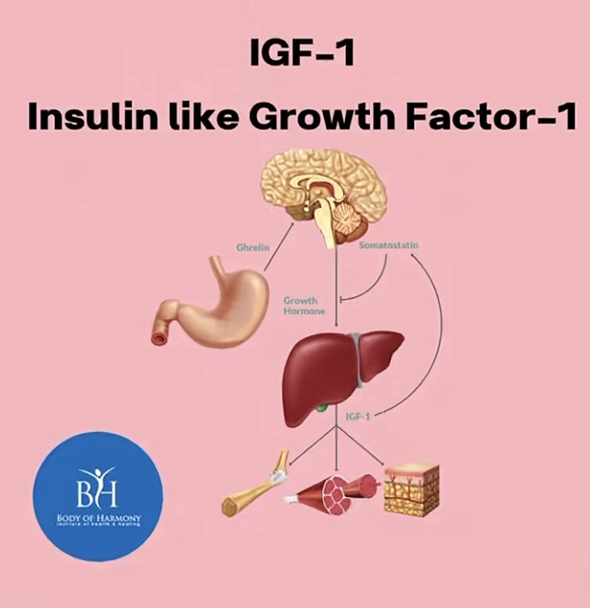 -how it works:while being hungry your body throws ghrelin into the brain whats make your body to develop igf-1. so when ur hungry and eating in a small calorie surplus u support hormones production while not being bloated.