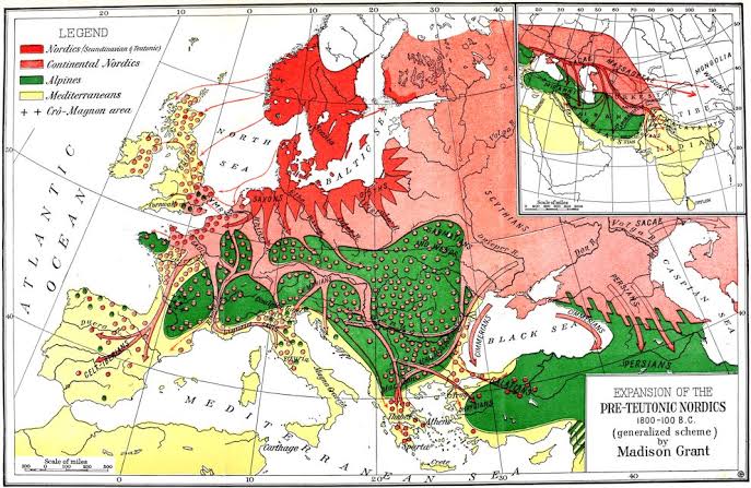 im seeing some germans. they have dark hair, brown eyes and dark red skin