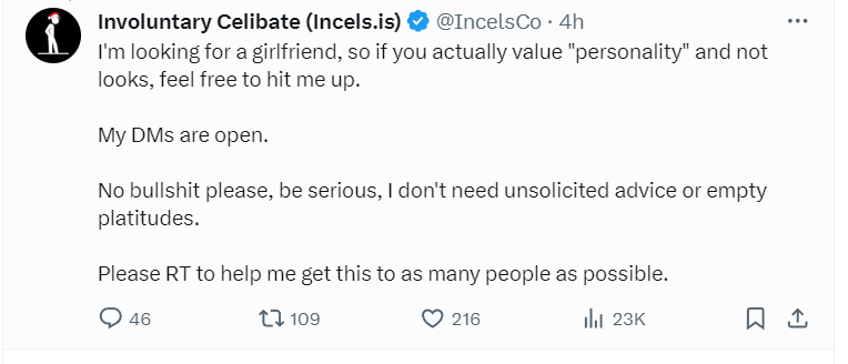 I mean, nothing particularly wrong in this shit innit. He is using his halos as a status upgrade to attain a femcel for this Valentines. And I genuinely hope ascends in this successful attempt of finding a girl from twitter![]()