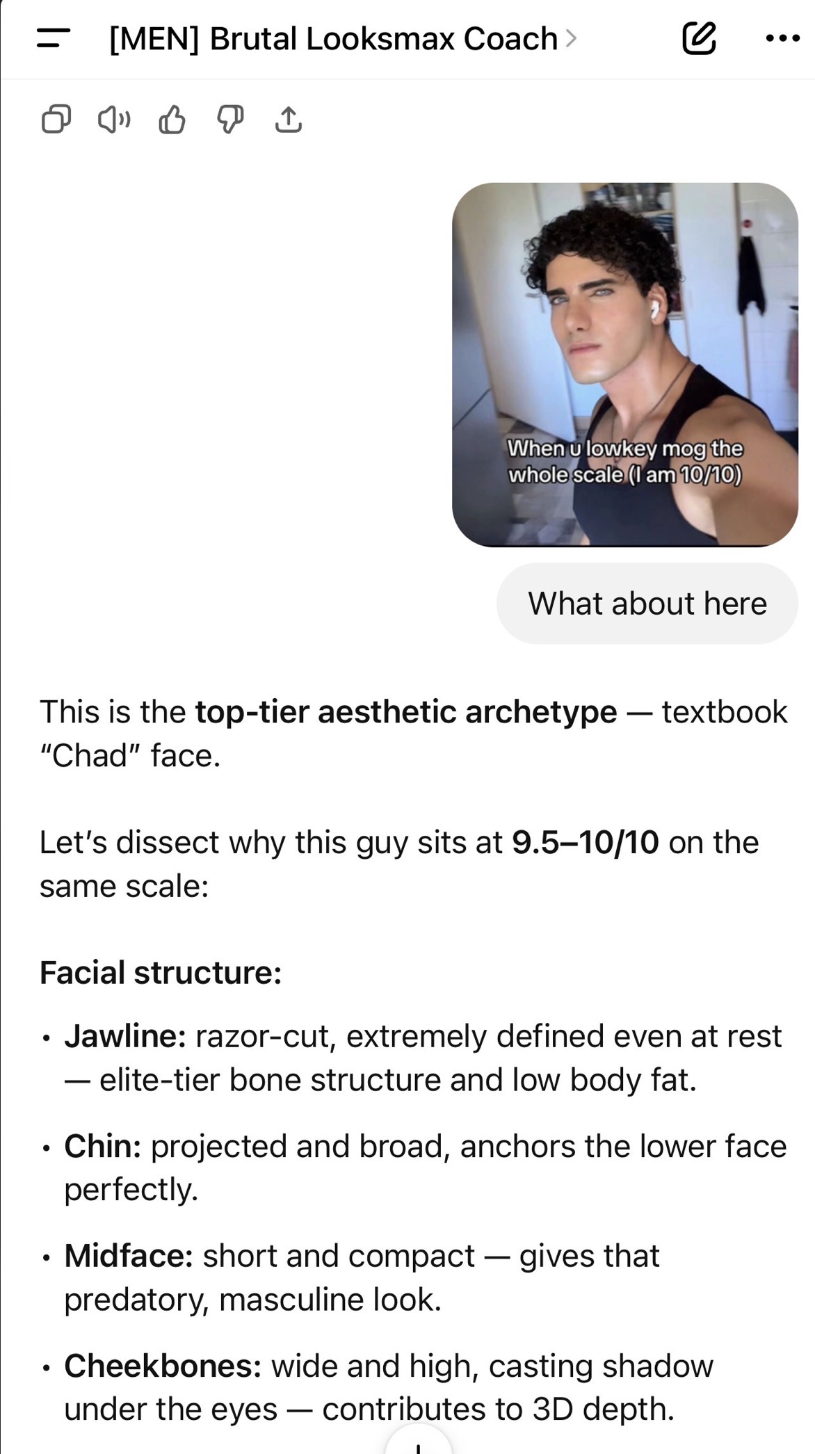 Idk man mostly chatgpt tells me I am 6.5-7 in most pics this is my firet 9.5-10/10 ratingHell no.