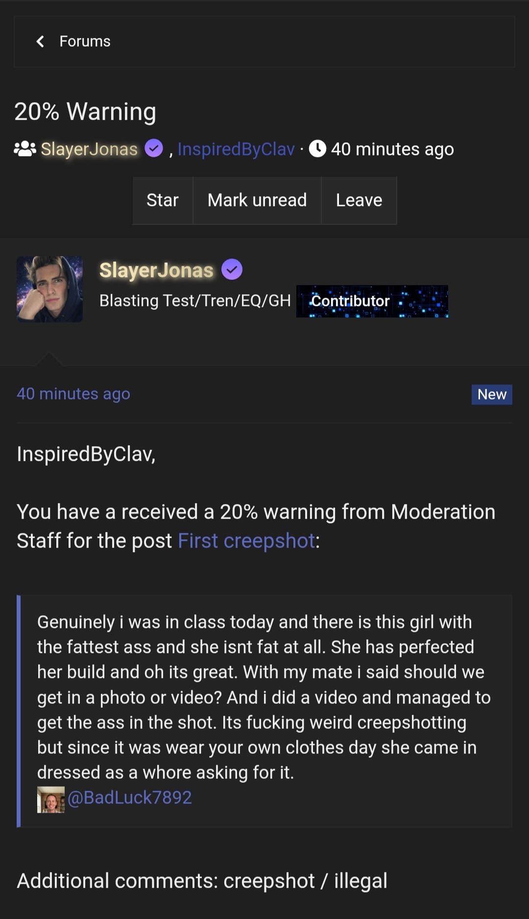 there was a guy getting mad at his zoophilia thread being removed@SlayerJonas leaking pms