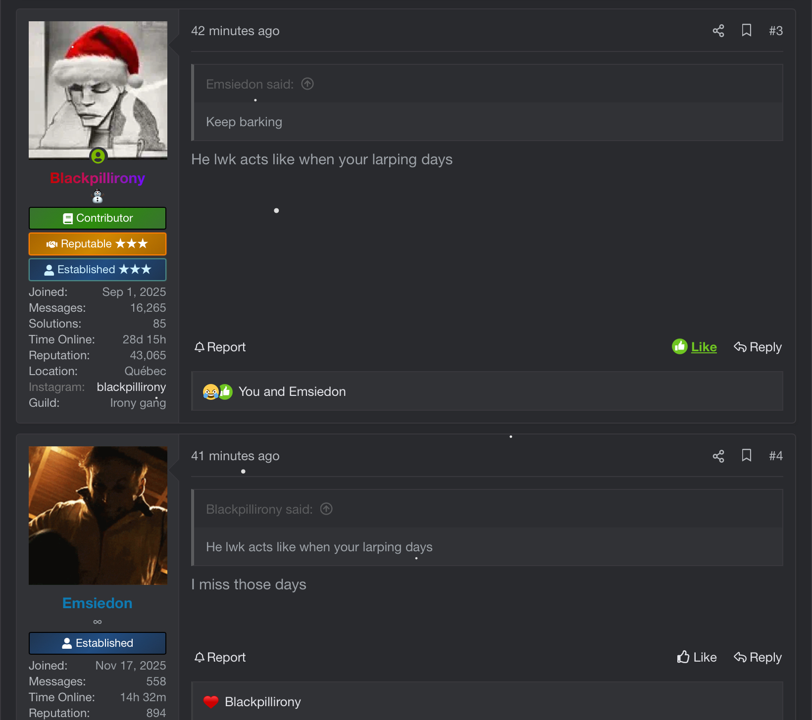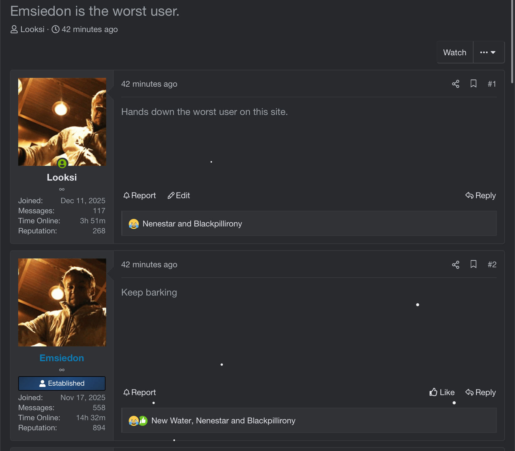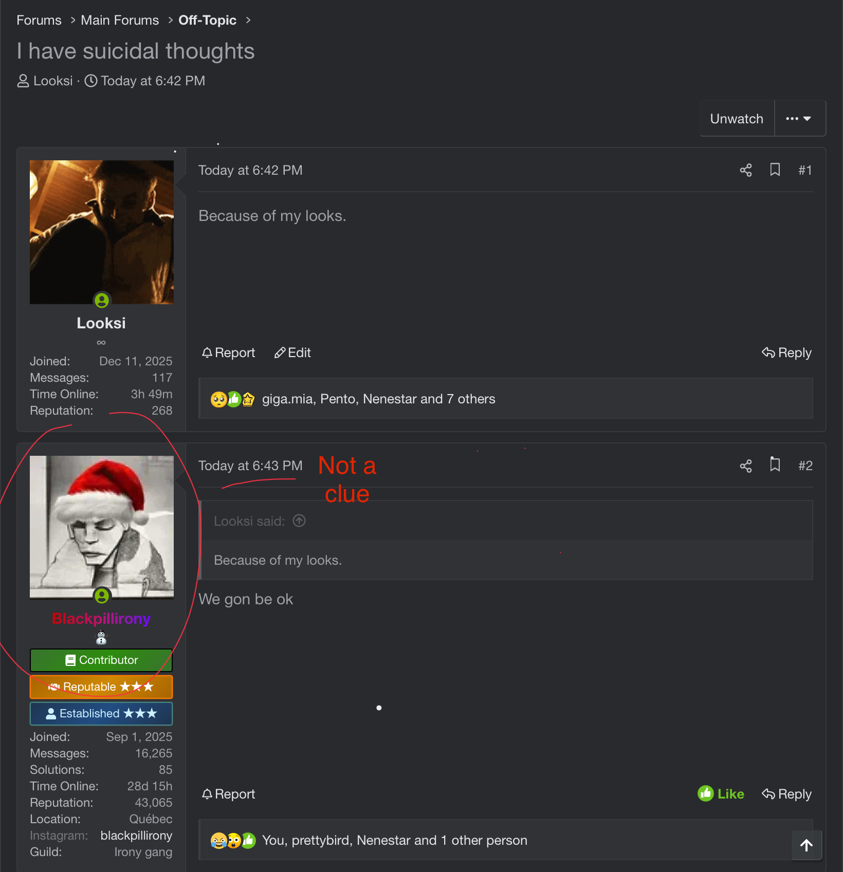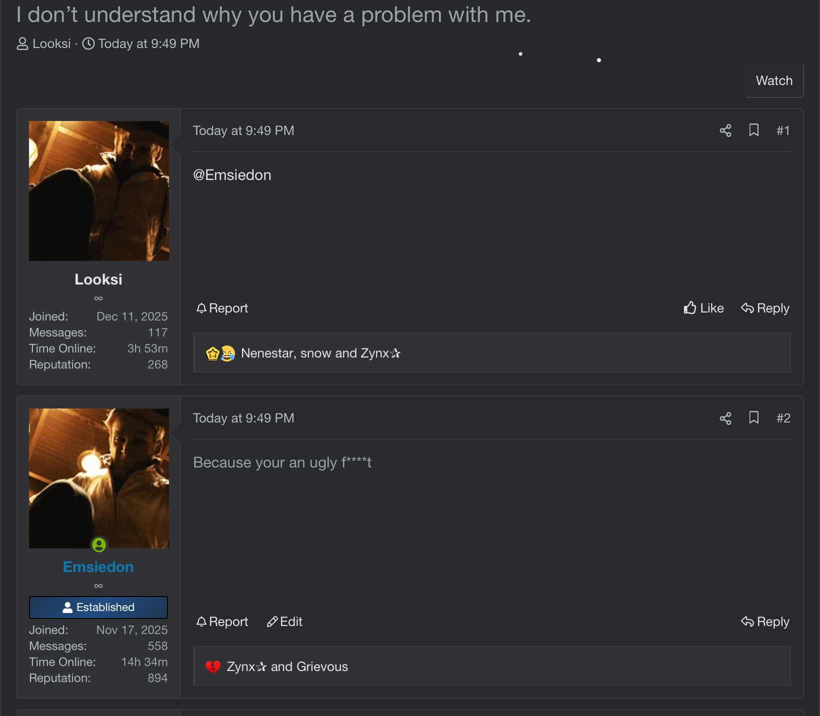 After this I start going into Looksi’s threads as Emsiedon and telling him/me to kill himself etc etc