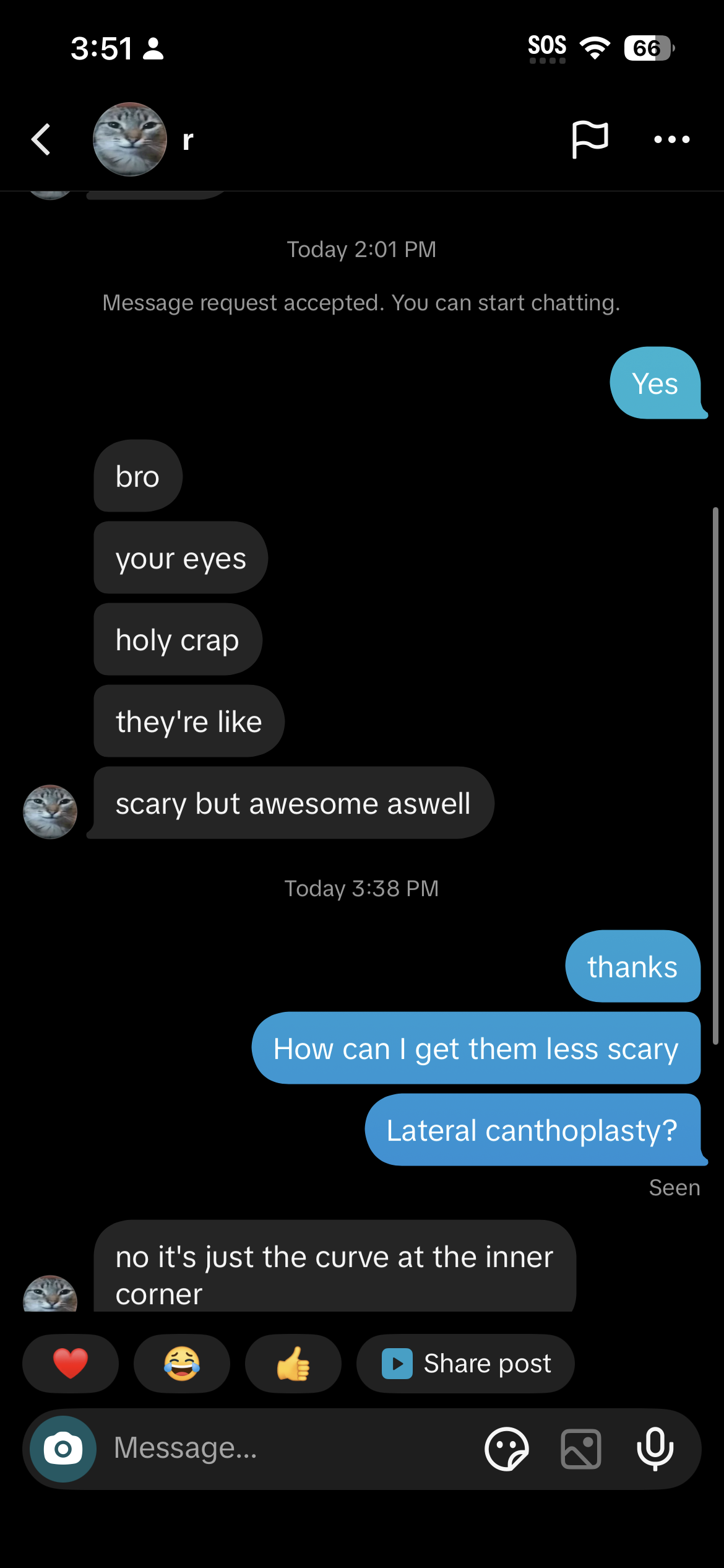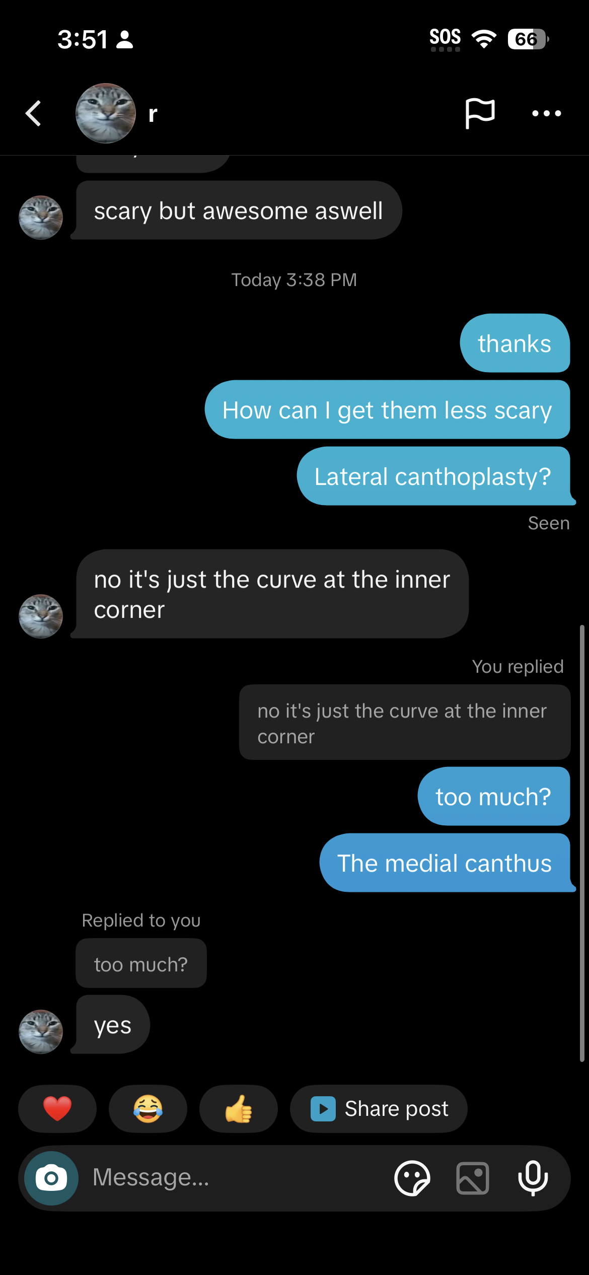 lowiqcel why did you cut your medial canthis it look weird asf nowLateral canthoplasty + lid repositioning or just lateral canthoplasty