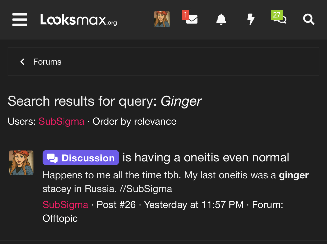 haha my oneitis didnt even give a shitshe always wanted me to obsess, simp and thirst over her