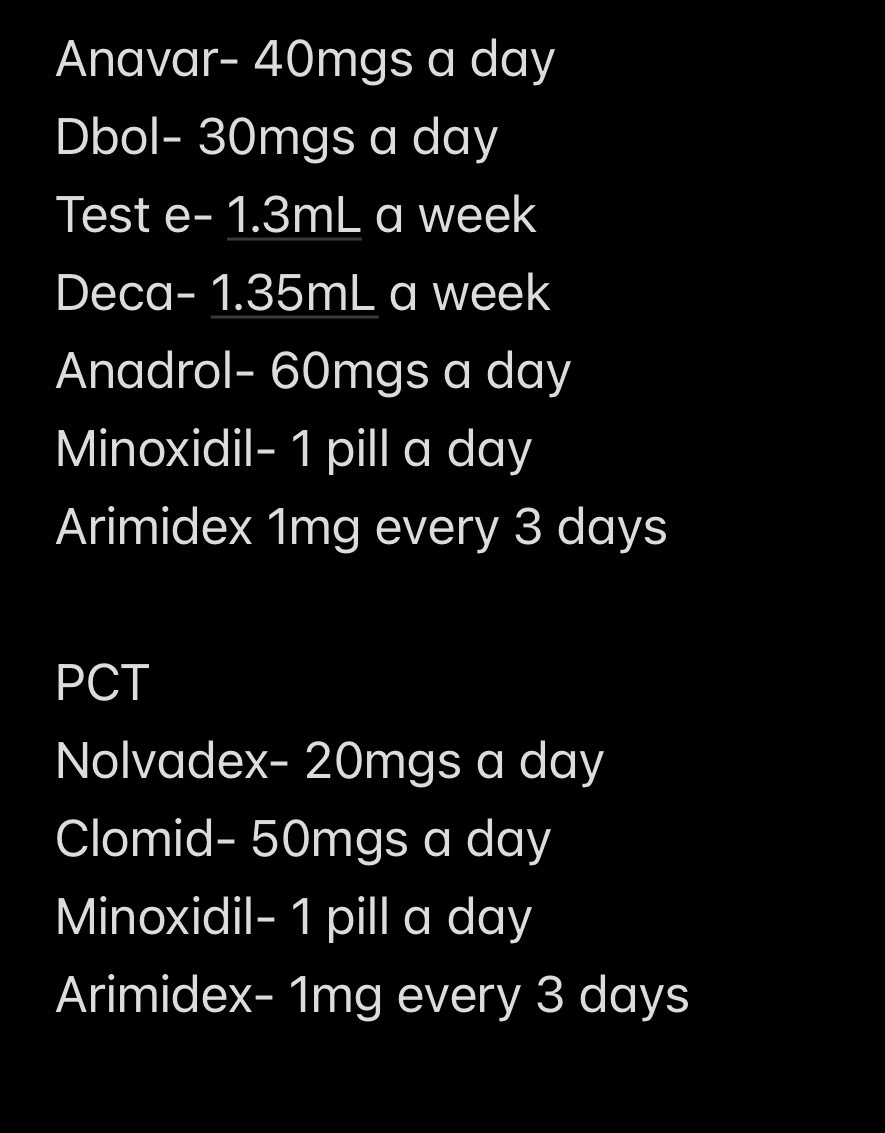 This was the cycle I was gonna run when I was 16 jfl, I was so retarded. My liver would’ve failed at week 8. It’s funny considering the cycle im on now