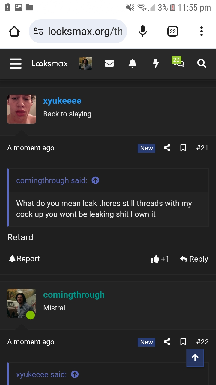 Says jes gonna leak my dick I tell him you wont leak shit I own it theres threads up he then calls me a retard,
