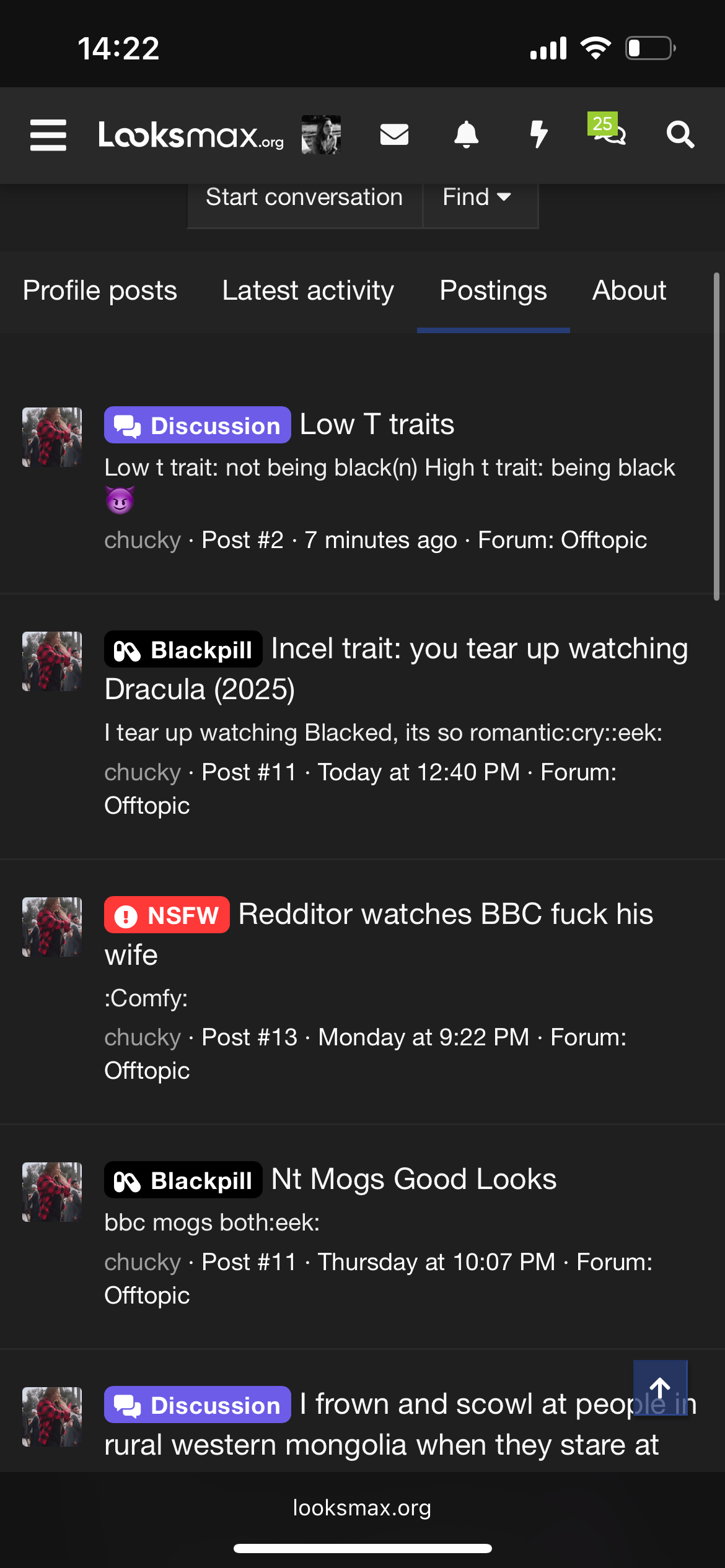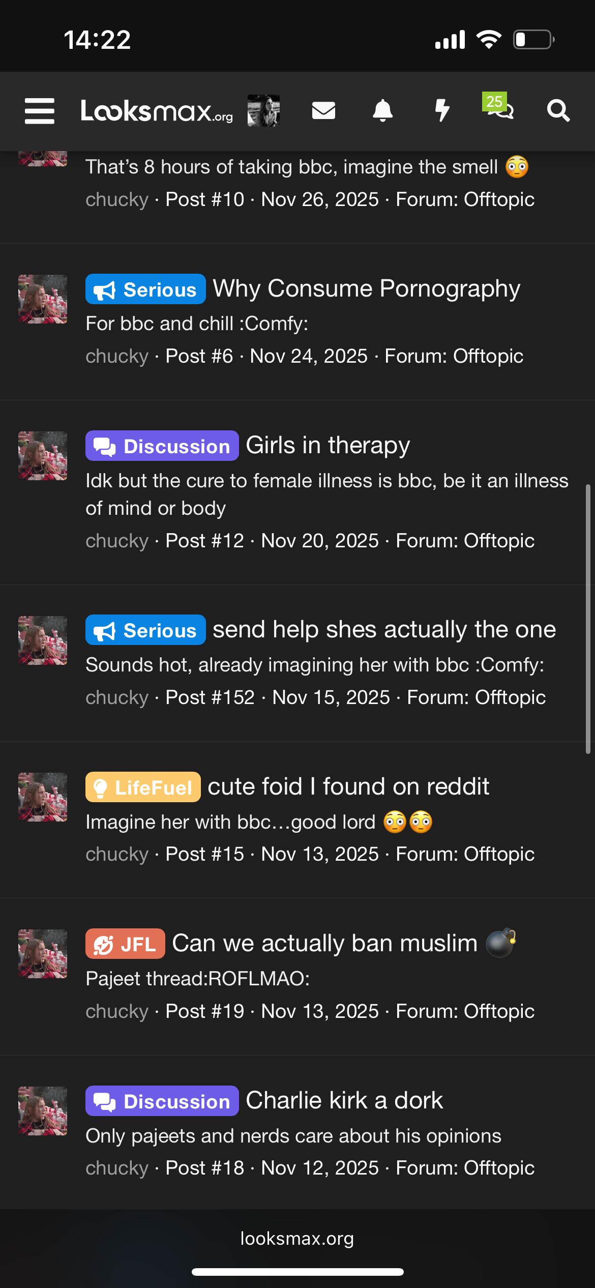 7. Watches bp edits and looksmaxxing videos