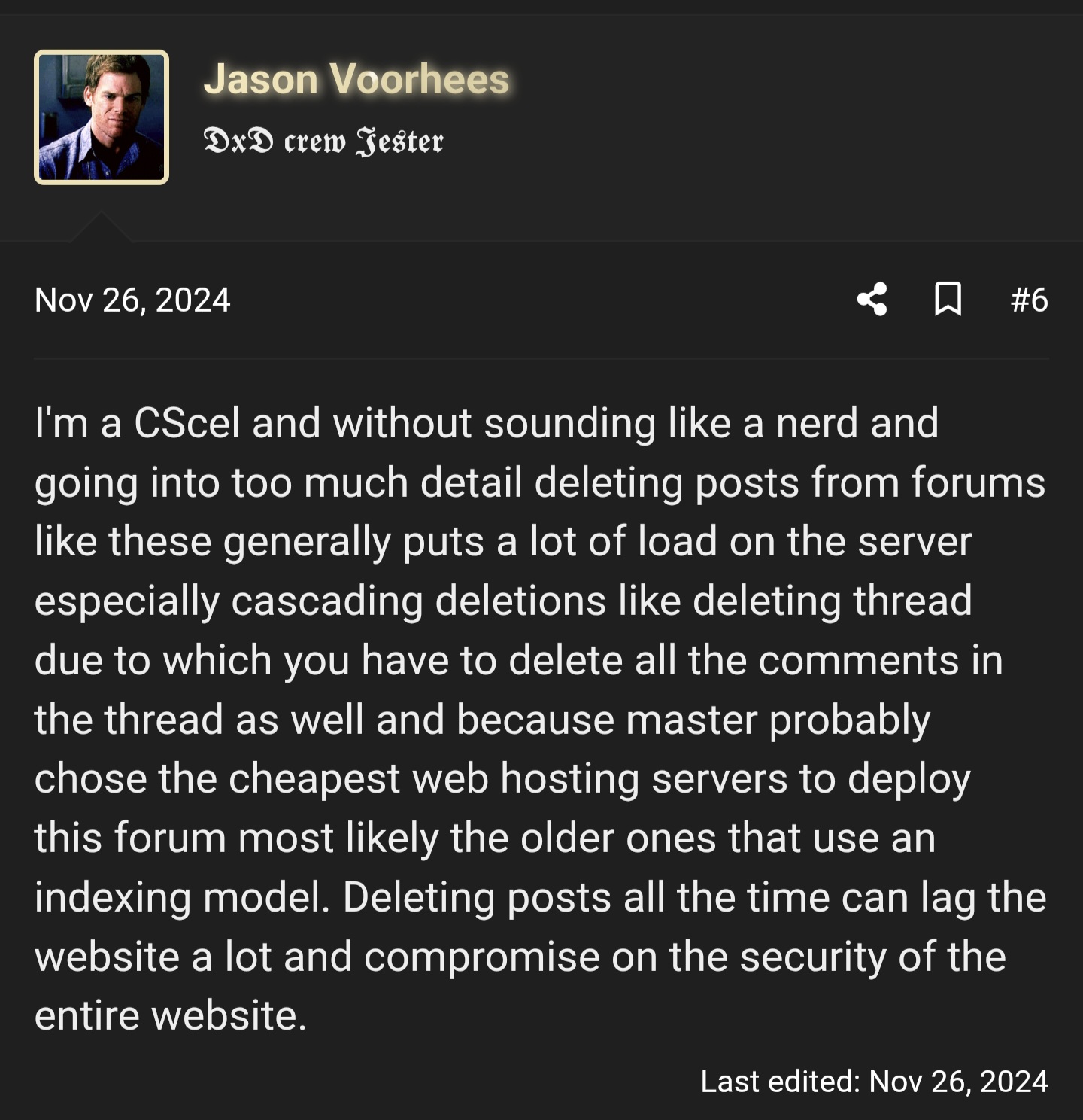 One of the staff guys wrote up a constitutional article about why they don't like to delete shit a while back, wish I bookmarked it I've been looking for 8 mins now and can't find shit.