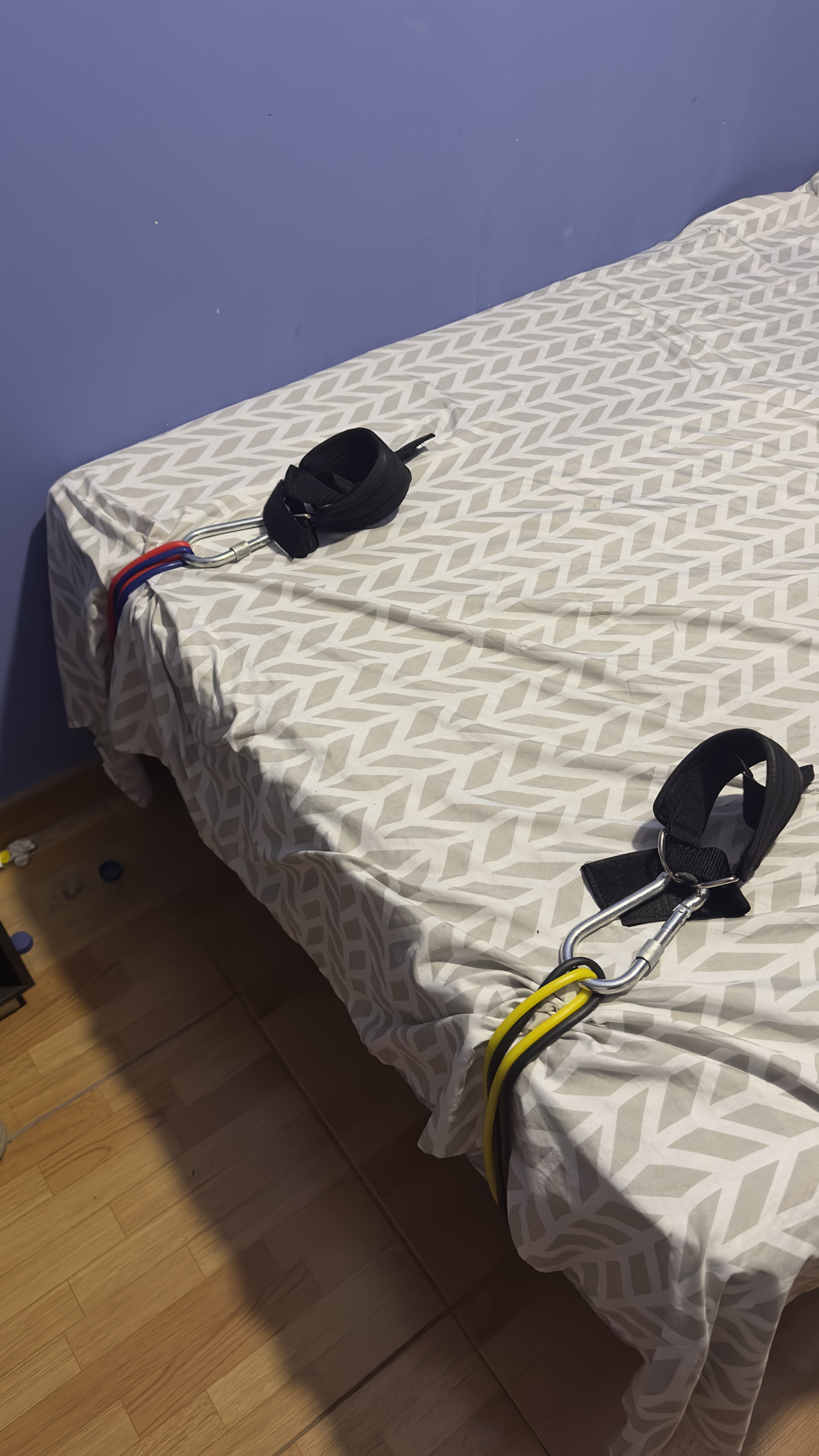 Bandas de resistencia, estira las piernas al dormir y puedes amanecer un poco más alto por la postura, algunos también lo usan para estirar las microfracturas creo¿Es para estirarte? ¿Cómo se llama las sogas de colores?