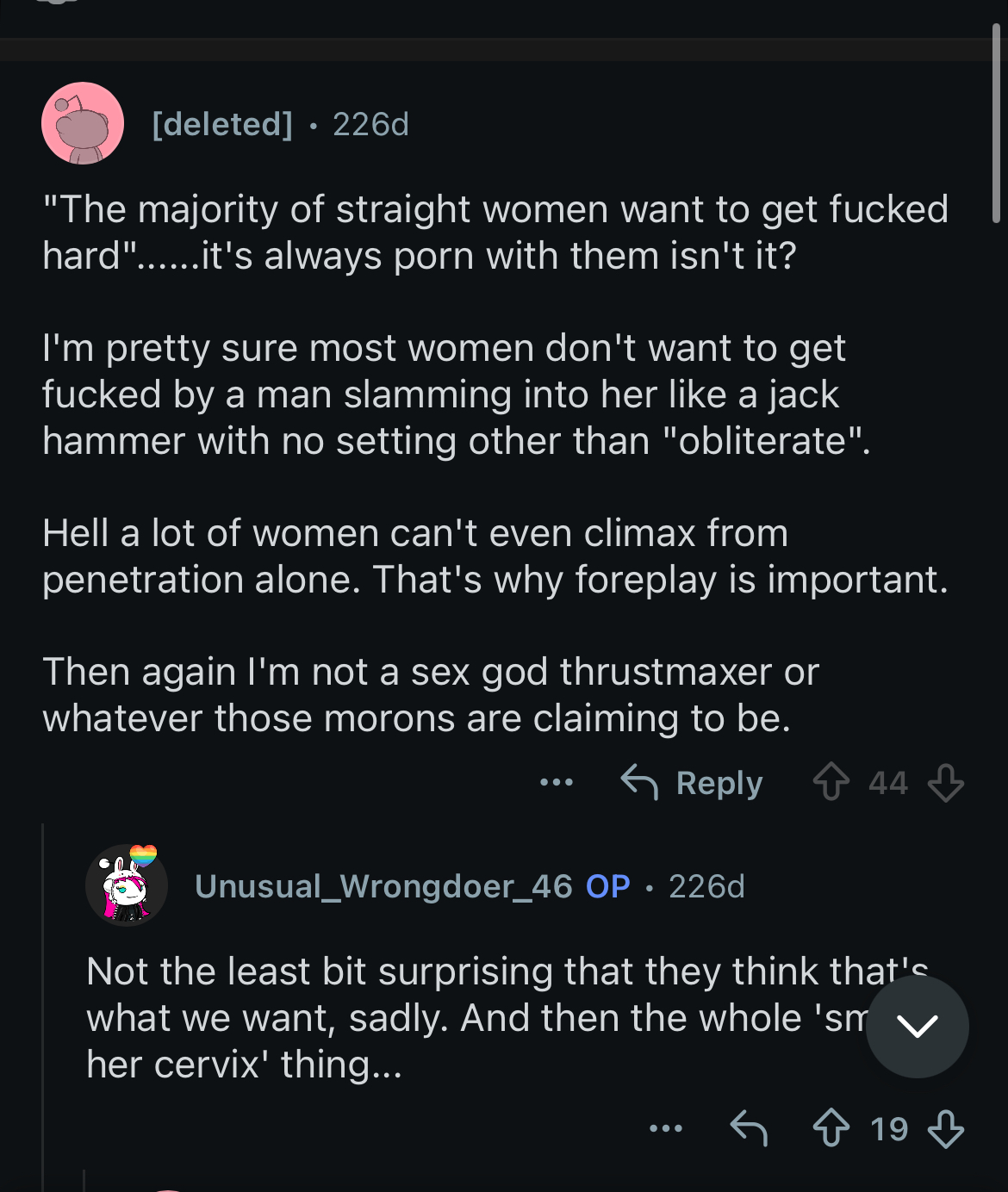 i love how all the comments cherry picked his fuck hard and last longer comment when they were clearly hyperbole