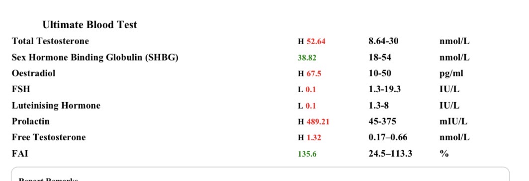 - SHBG: 38.8 nmol/L