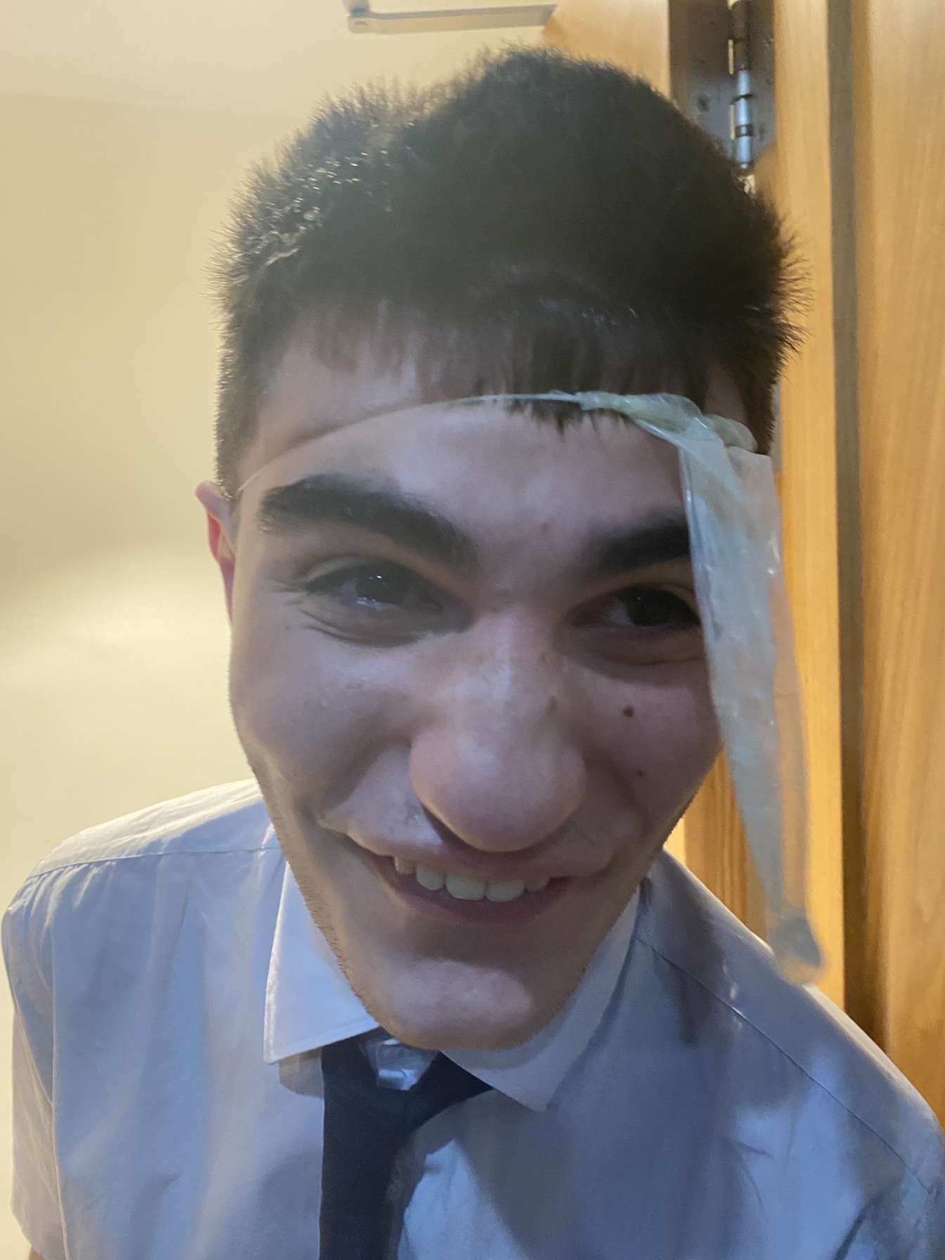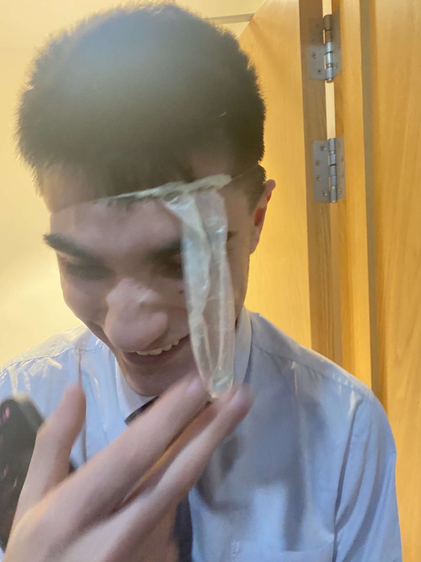 Why is he wearing a condom on his head