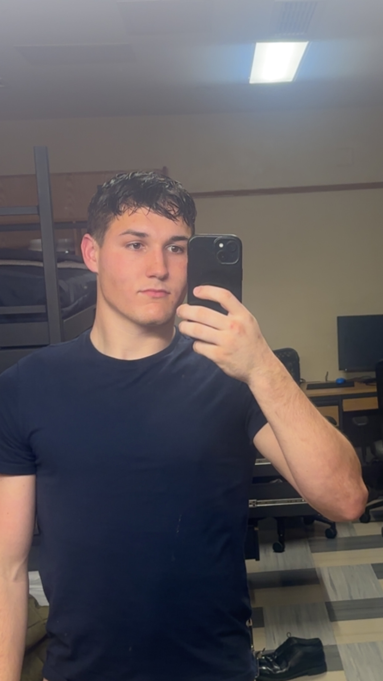 Every time I go to the barber shop, I come out looking fucked up. What should I ask for to frame my face well? My only constraint is if anything, the sides must be trimmed a bit shorter to comply with regulations.
