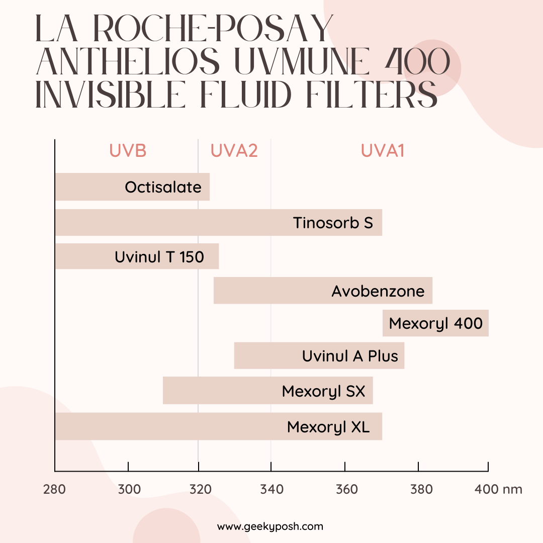This is the best sunscreen on the market right now because it can block UVA1 rays most really only UVB and UVA2 rays here is a chart. Mexoryl 400 is the filter only in this suncreen.View attachment La-Roche-Posay-Anthelios-Uvmune-400-Invisible-Fluid-SPF-50-Filters.webp