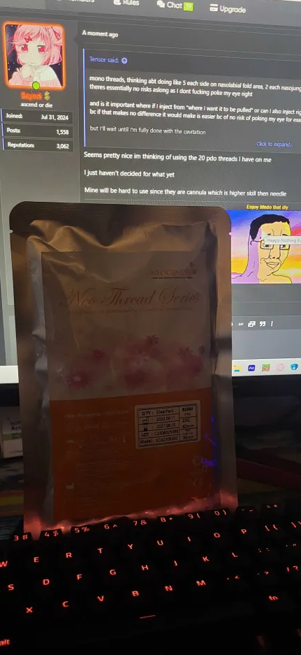 mono threads, thinking abt doing like 5 each side on nasolabial fold area, 2 each nasojungal fold area andone or 2 each on the very end of the upper eyelid