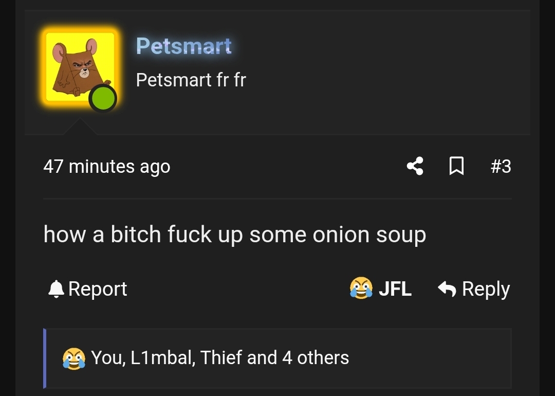 wyd if this latino nigga comes JFLing your post about onion soupsun no way it was that crazy![]()