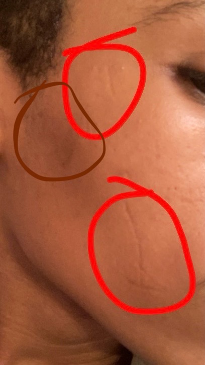 Are those scars?how do i fix these marks in the red and the black area circled in brown