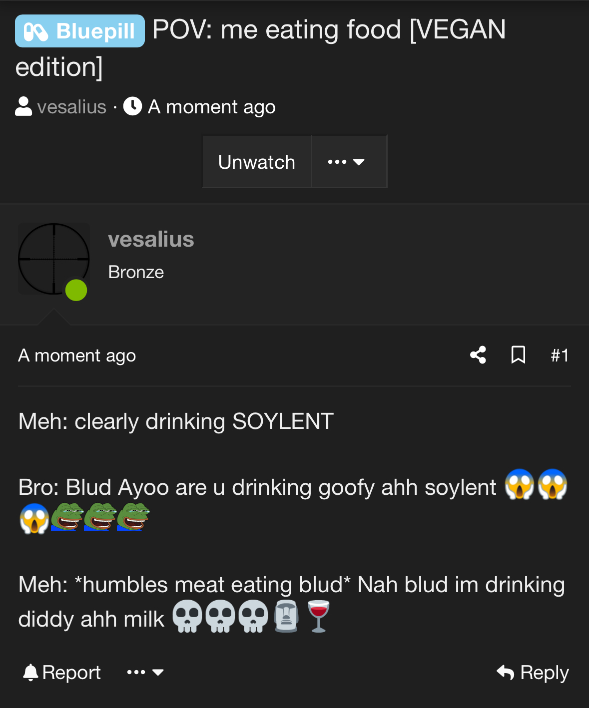 Meh : clearly eating BABY FORESKIN ✡️ Goyim Bro: Ohio ahh Blud are u eating epstein ahh baby foreskin :feelshaha::feelshaha::feelshaha::eek: Meh: Nah blud im eating An Diddy Ahh pizza 💀💀💀🗿🍷 recap: