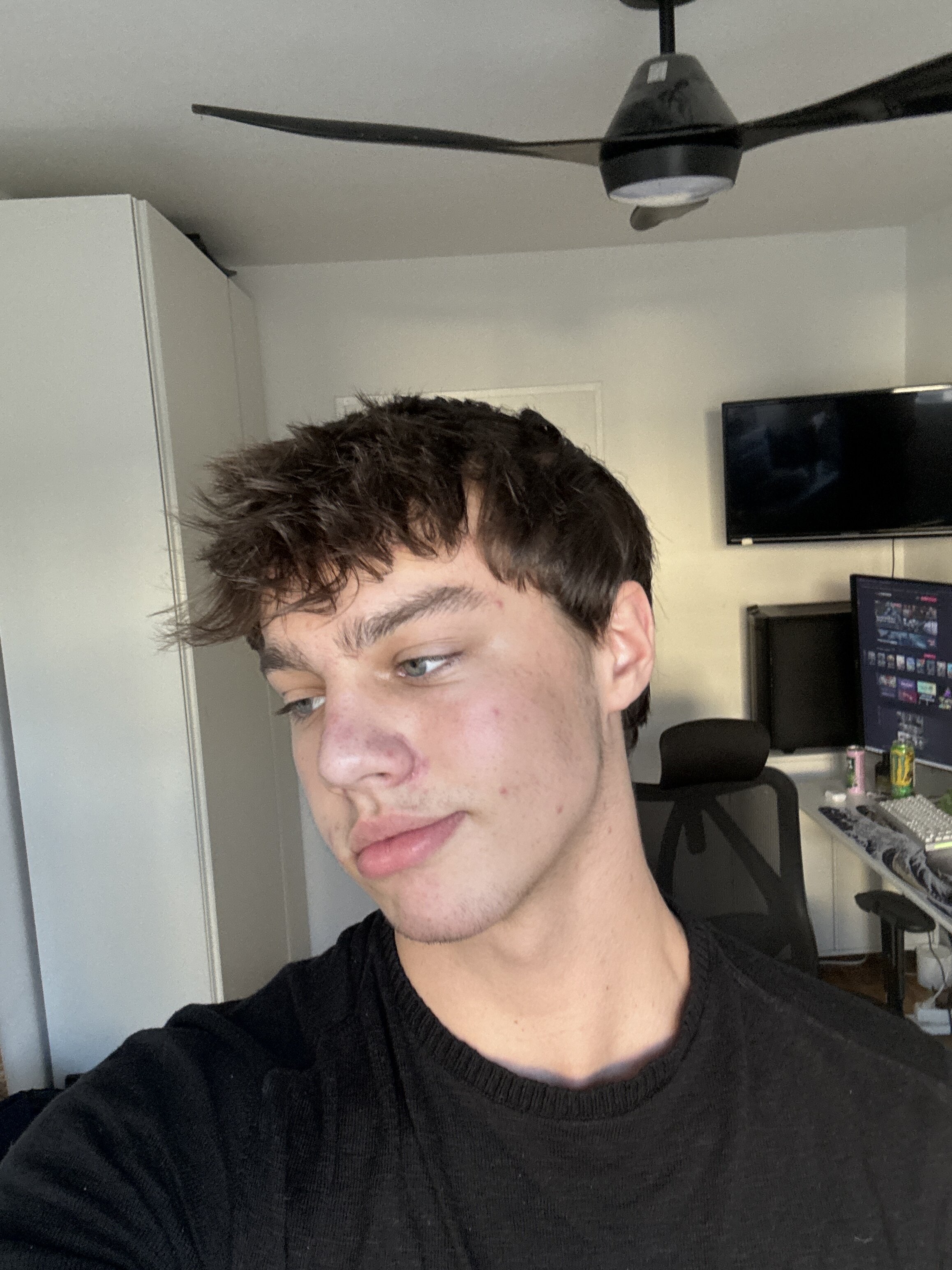 Well, you could use minoxidil and paint your eyebrows black to make them more definedProlly haircut + big forehead and I guess a lot of bloating comes from the test cause here’s a pic from half a year ago now 80kg then 73 or something